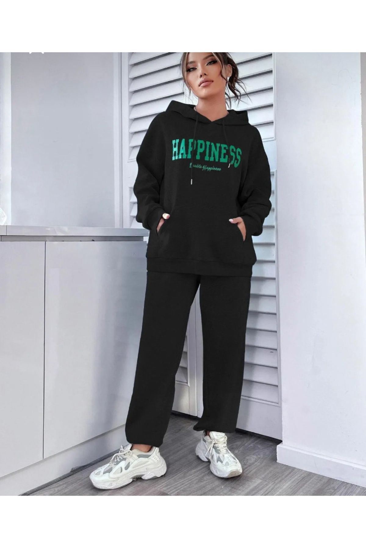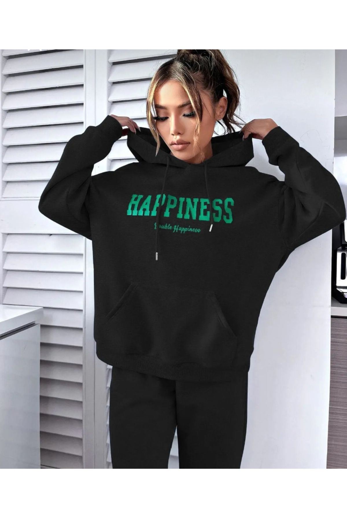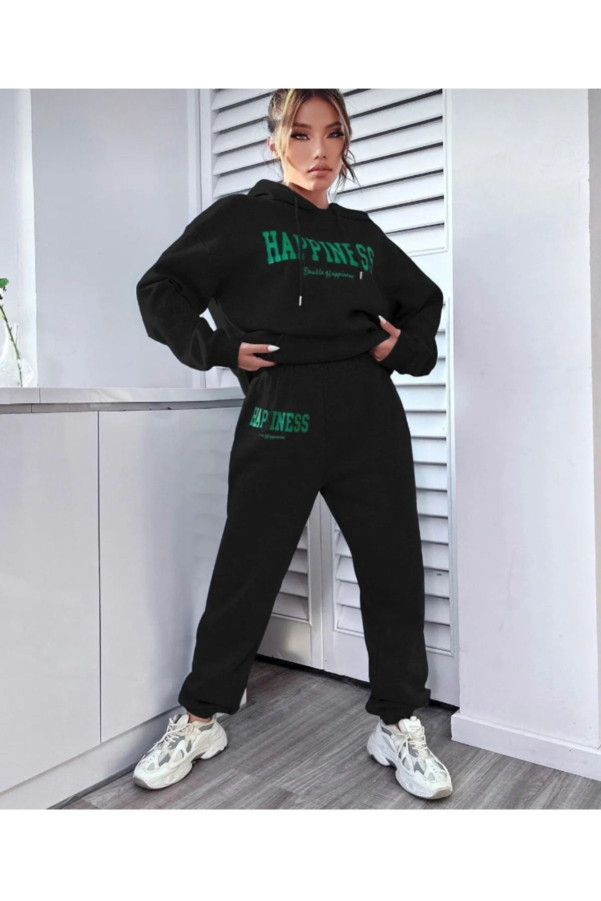 - Organik materyaller kullanılarak üretilmiş, sürdürülebilir moda anlayışını benimseyen bir alt-üst takım; - Sweatshirt ve eşofman olmak üzere iki parçadan oluşan bu takım, rahatlığı ve şıklığı bir arada sunar; - Örme kumaş yapısı sayesinde esnek ve konforlu bir kullanım sağlar; - Lastikli paça tasarımı ile modern ve spor bir görünüm kazandırırken, hareket özgürlüğü sunar; - Standart kol tipi ve orta kalınlıkta kumaşı ile mevsim geçişlerinde ideal sıcaklık dengesi sağlar; - Tüm yaş gruplarına hitap eden tasarımıyla geniş bir kullanıcı yelpazesine sahiptir; - Regular boy kesimi sayesinde rahat bir oturuş ve günlük kullanım için uygundur; - Oversize silueti ile trend bir görünüm sunarken, uzun kol boyu ile tam koruma sağlar; - Yazı karakterli ve motto içeren deseniyle dikkat çekici bir stil oluşturur.; - Şardonlu ürün tipi, dayanıklılığı arttırarak uzun süreli kullanım imkanı tanır;