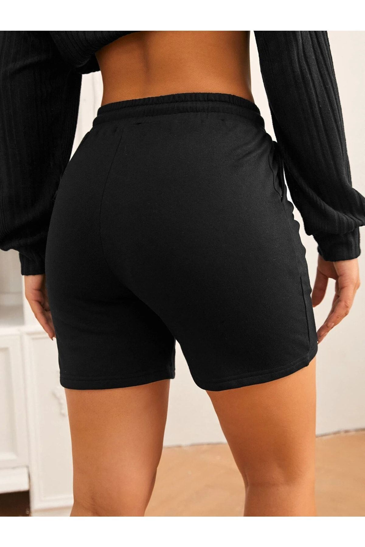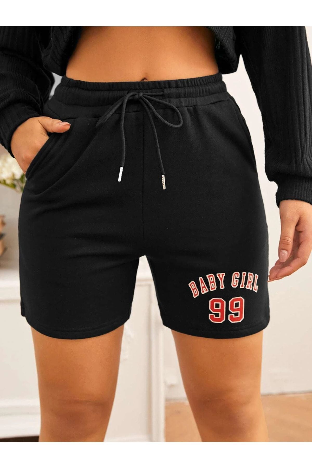 Siyah Kısa Baby Girl Şort - Penye Baskılı Kordonlu