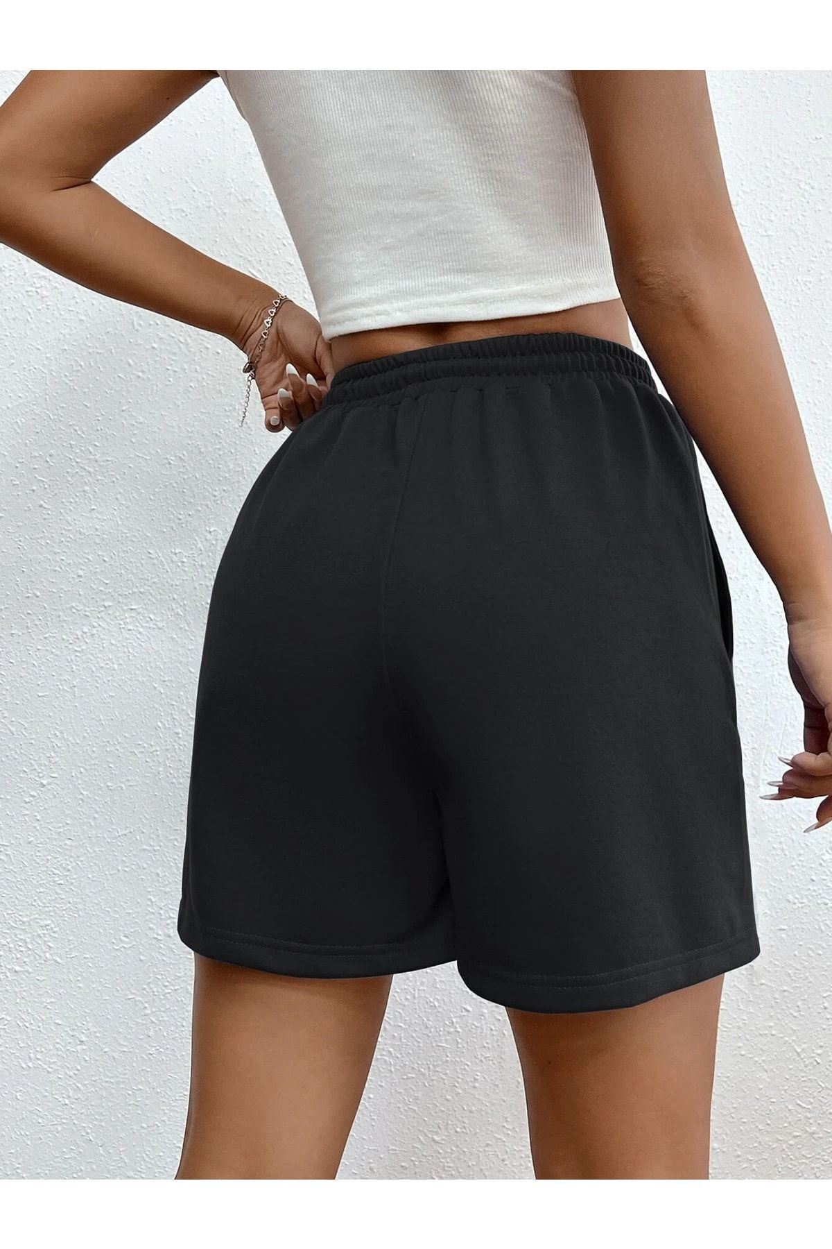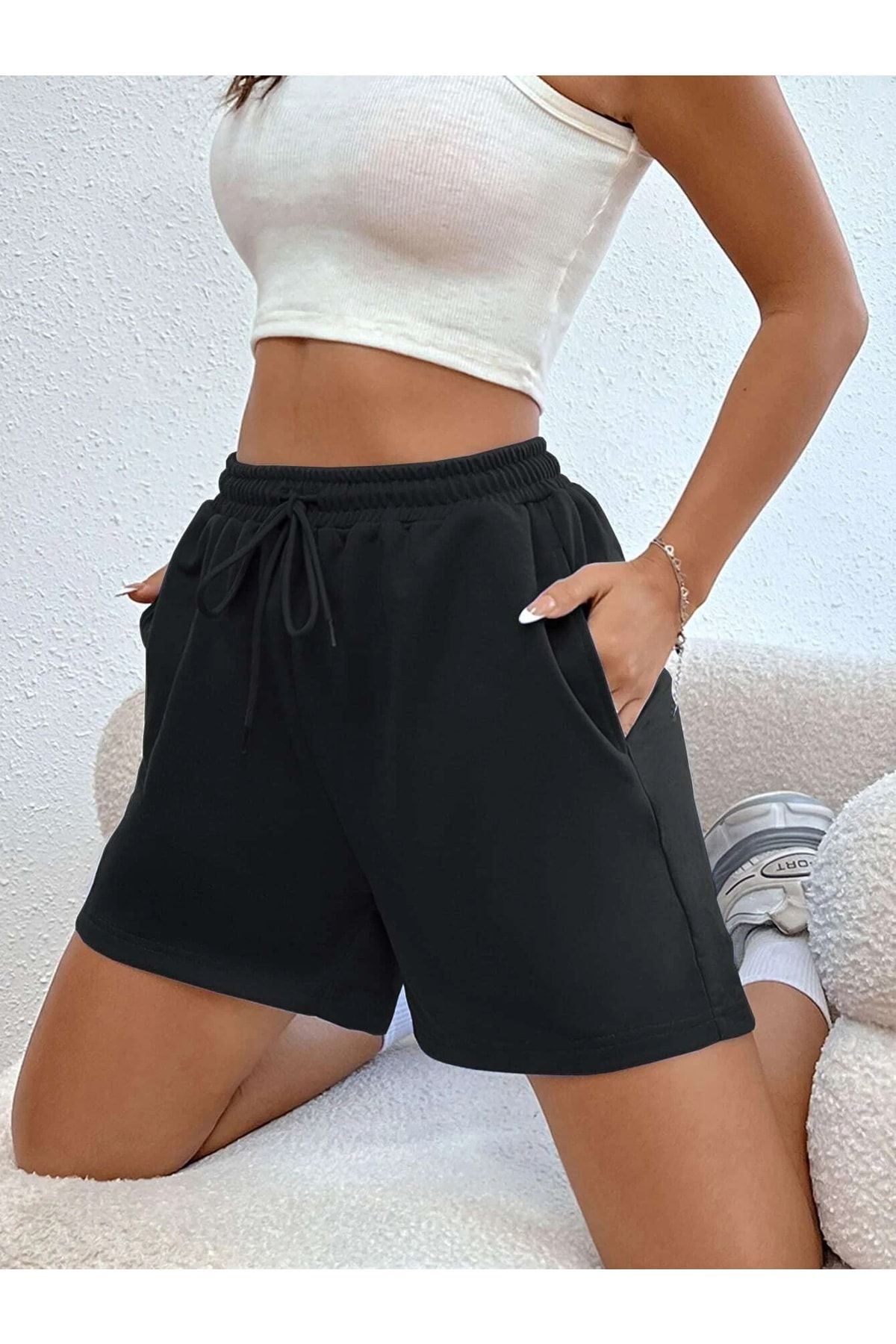 Siyah Kısa Basic Şort - Penye Baskısız Kordonlu