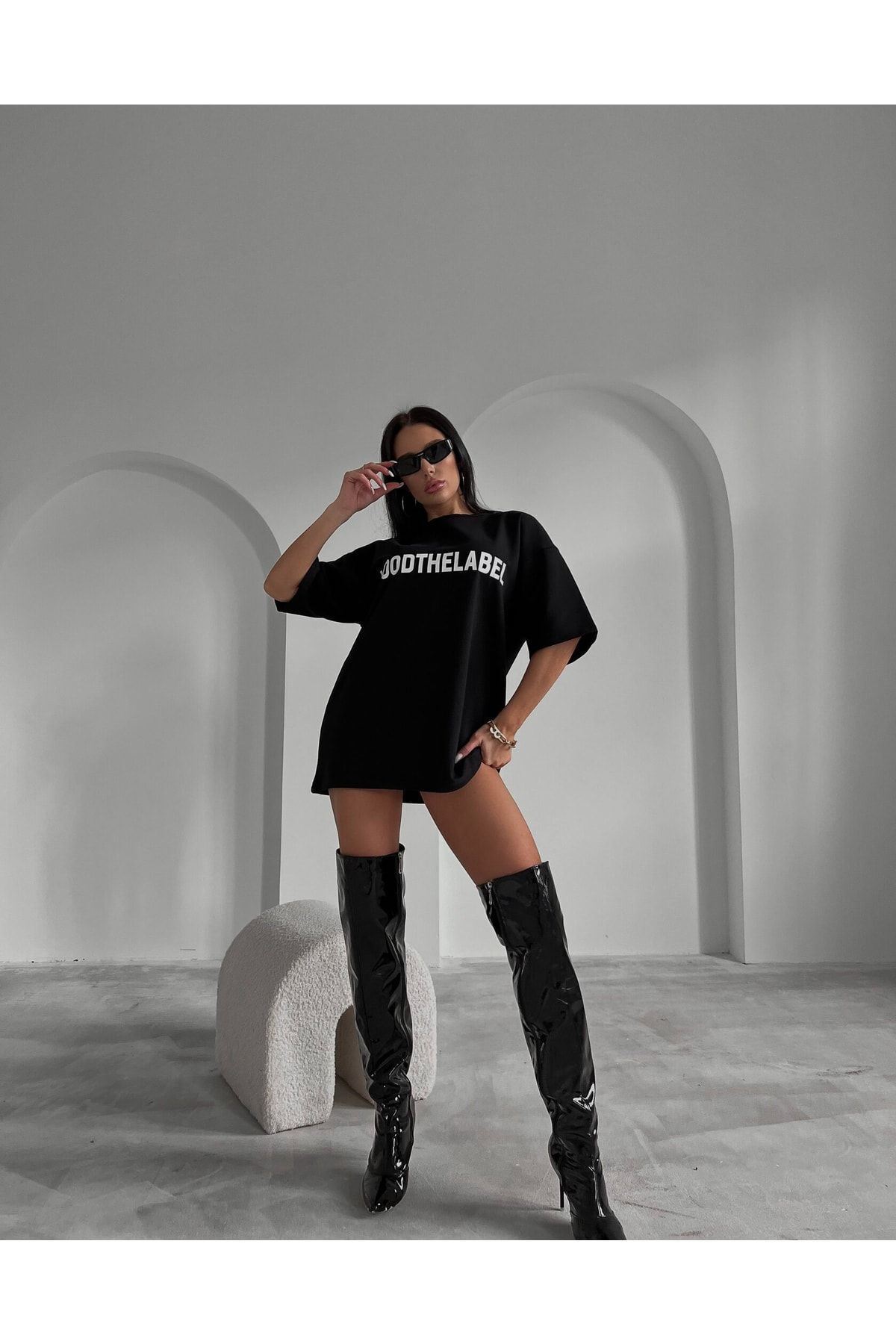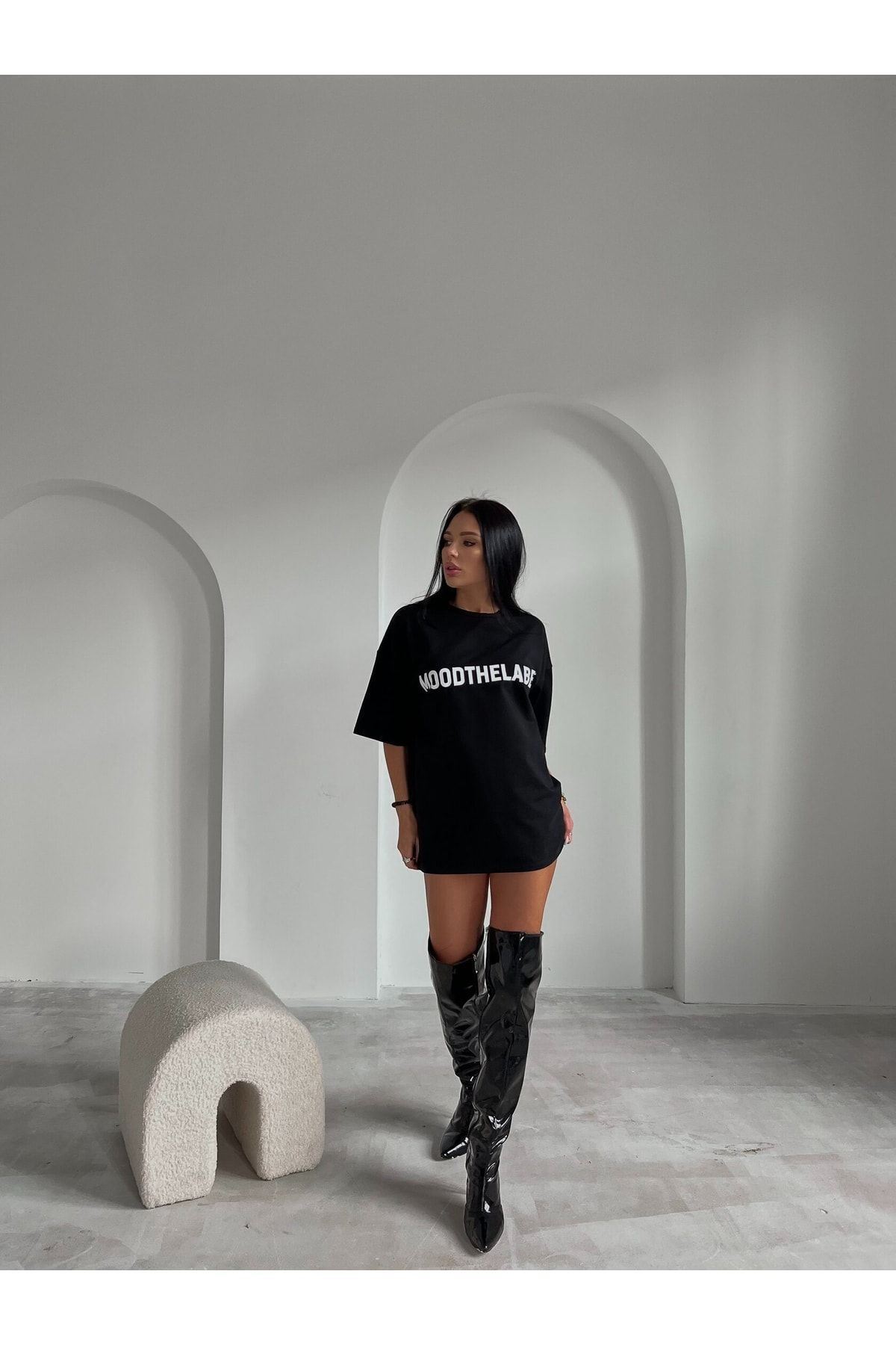 Siyah Oversize Mood The Label T-shirt - Oversize Baskılı
