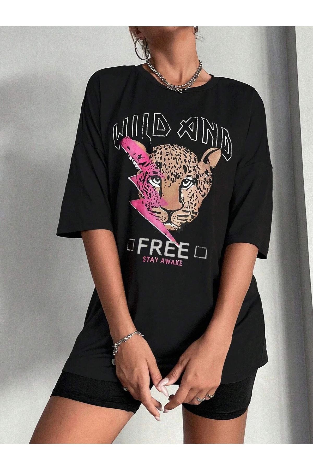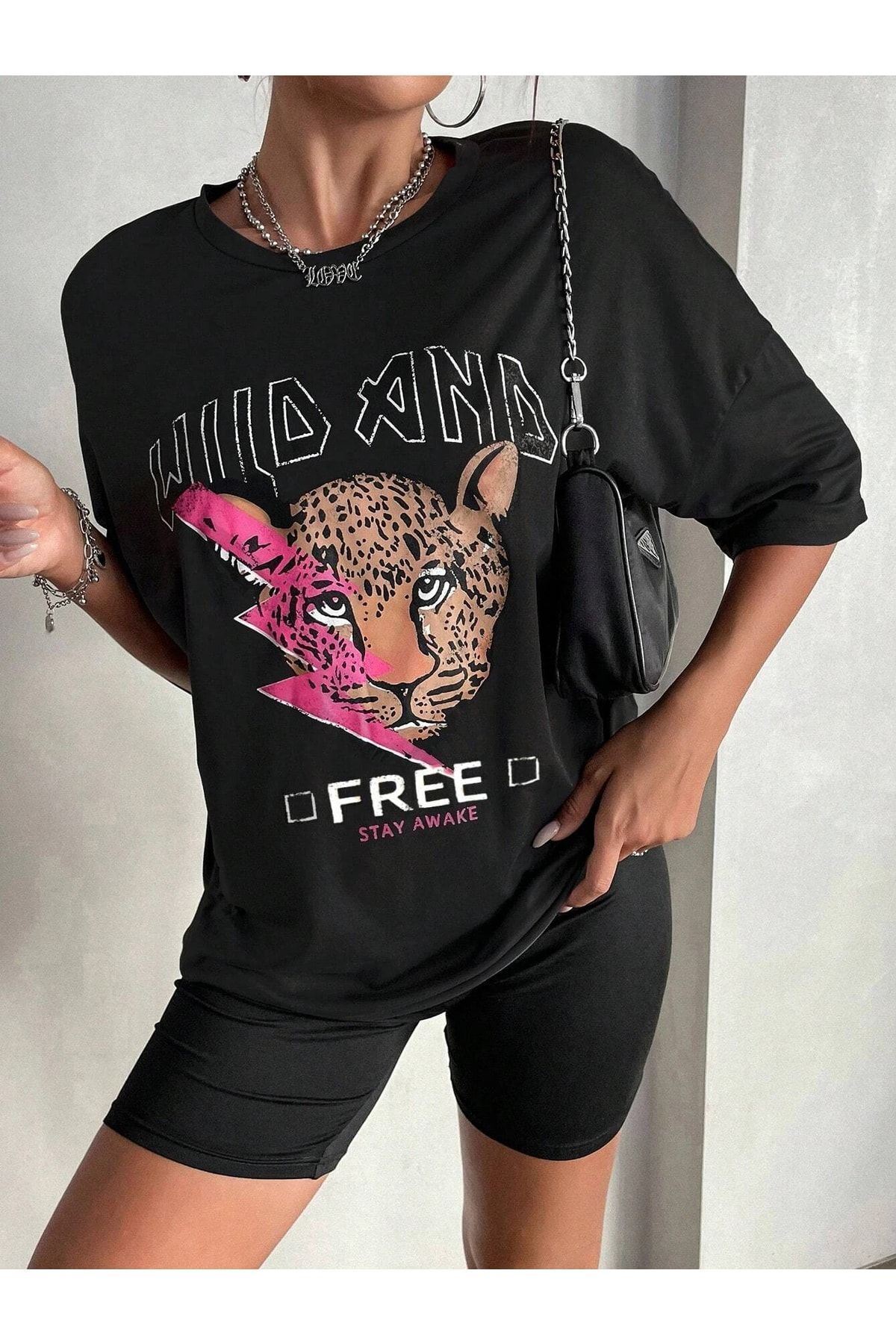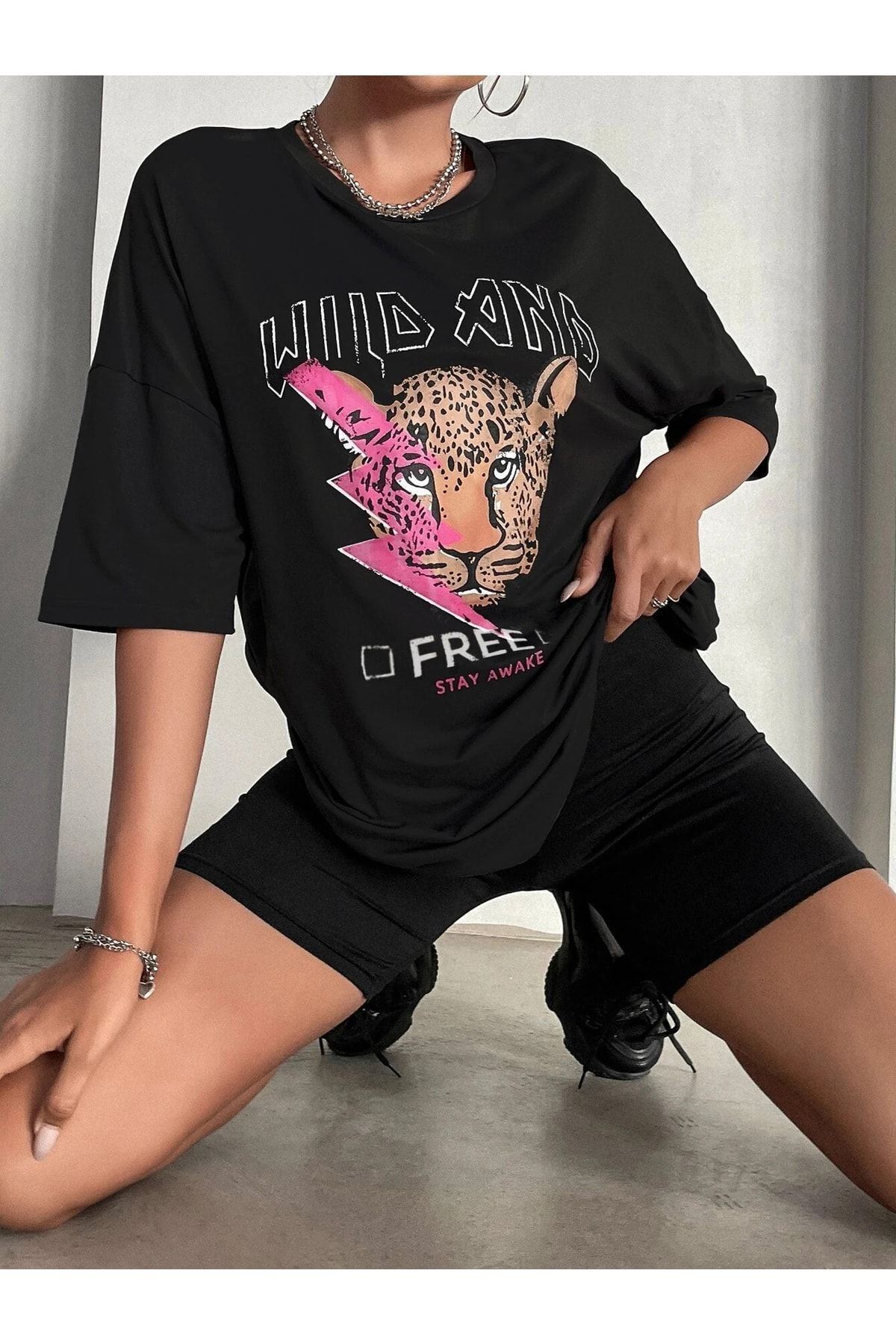 Siyah Oversize Tiger T-shirt - Oversize Baskılı