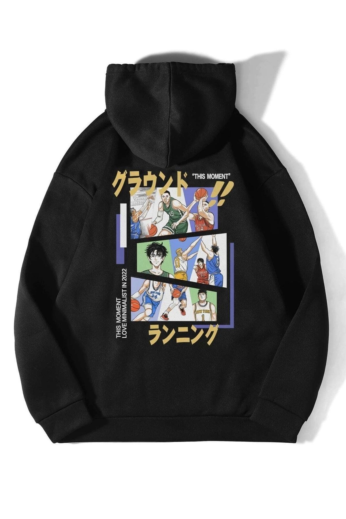 Siyah Unisex Oversize Kapi Baskılı Sweatshirt Hoodie Kapüşonlu