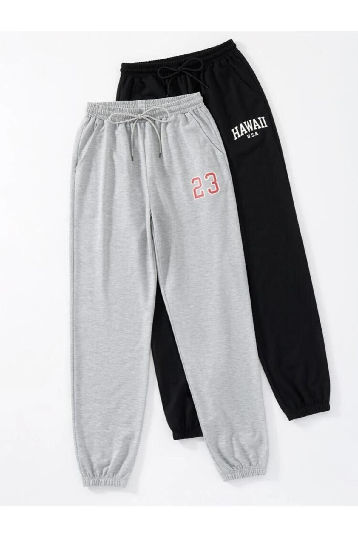 SİYAH VE GRİ EŞOFMAN ALTI 2'Lİ TAKIM 23/HAWAİİ