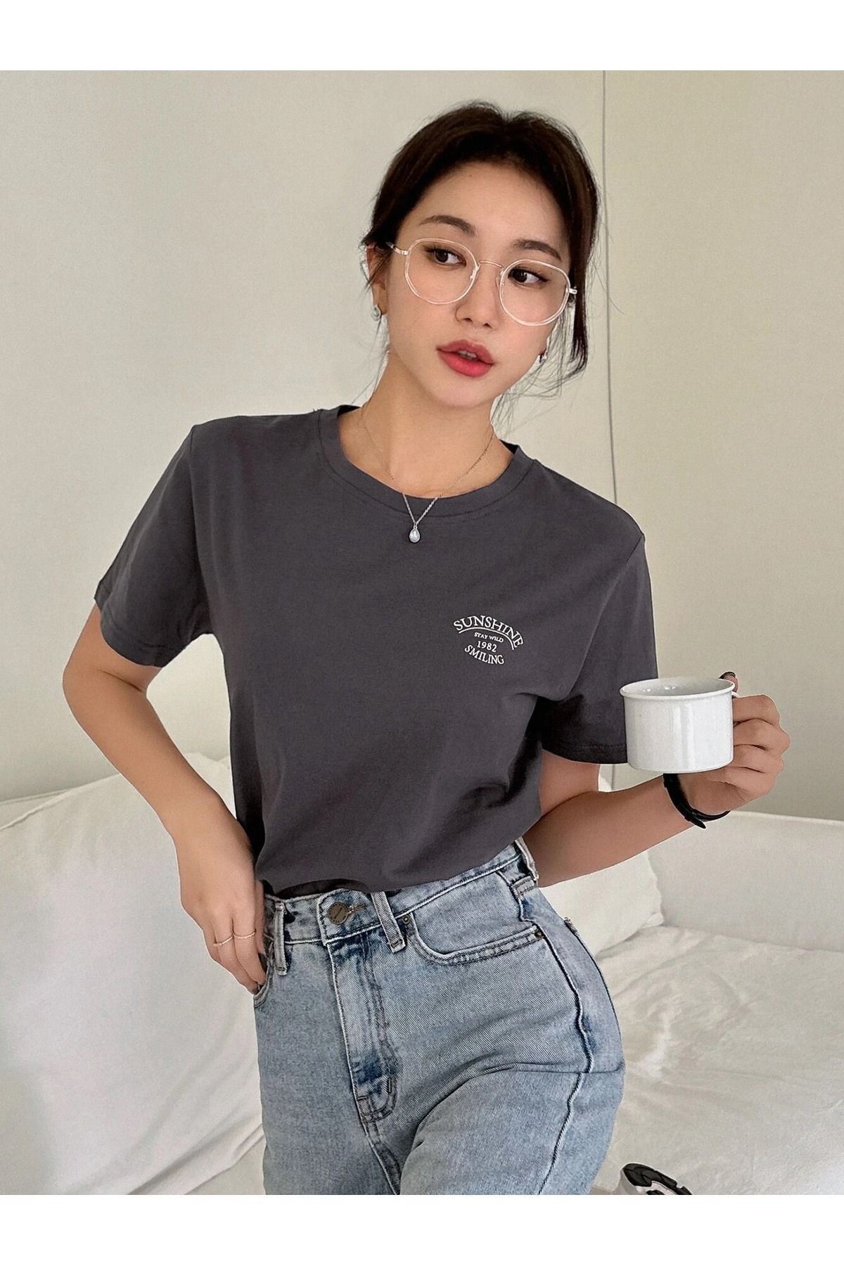 Sunshine 1982 Süprem T-Shirt - Füme Baskılı Oversize Bisiklet Yaka Kısa Kol Tişört