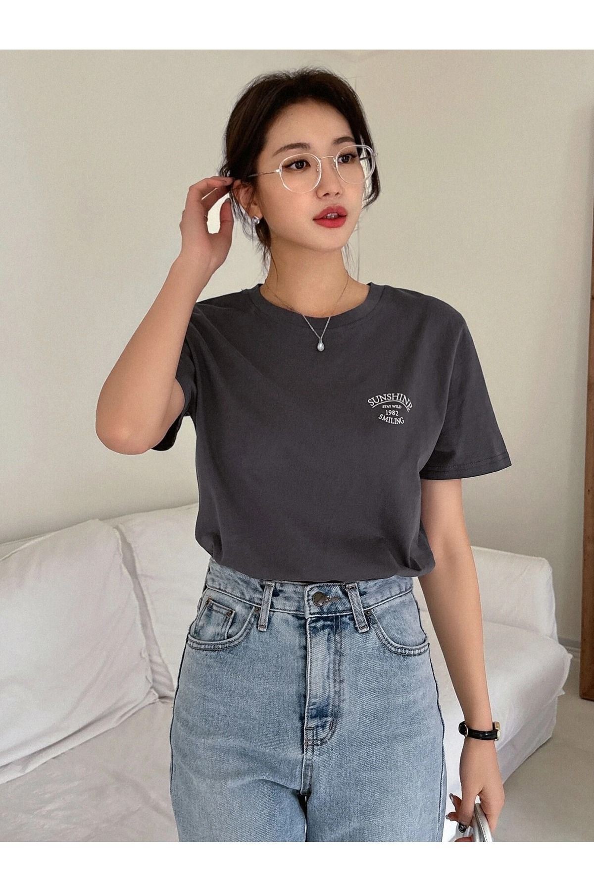 Sunshine 1982 Süprem T-Shirt - Füme Baskılı Oversize Bisiklet Yaka Kısa Kol Tişört