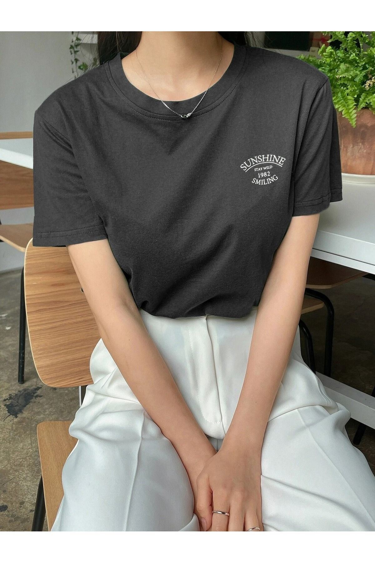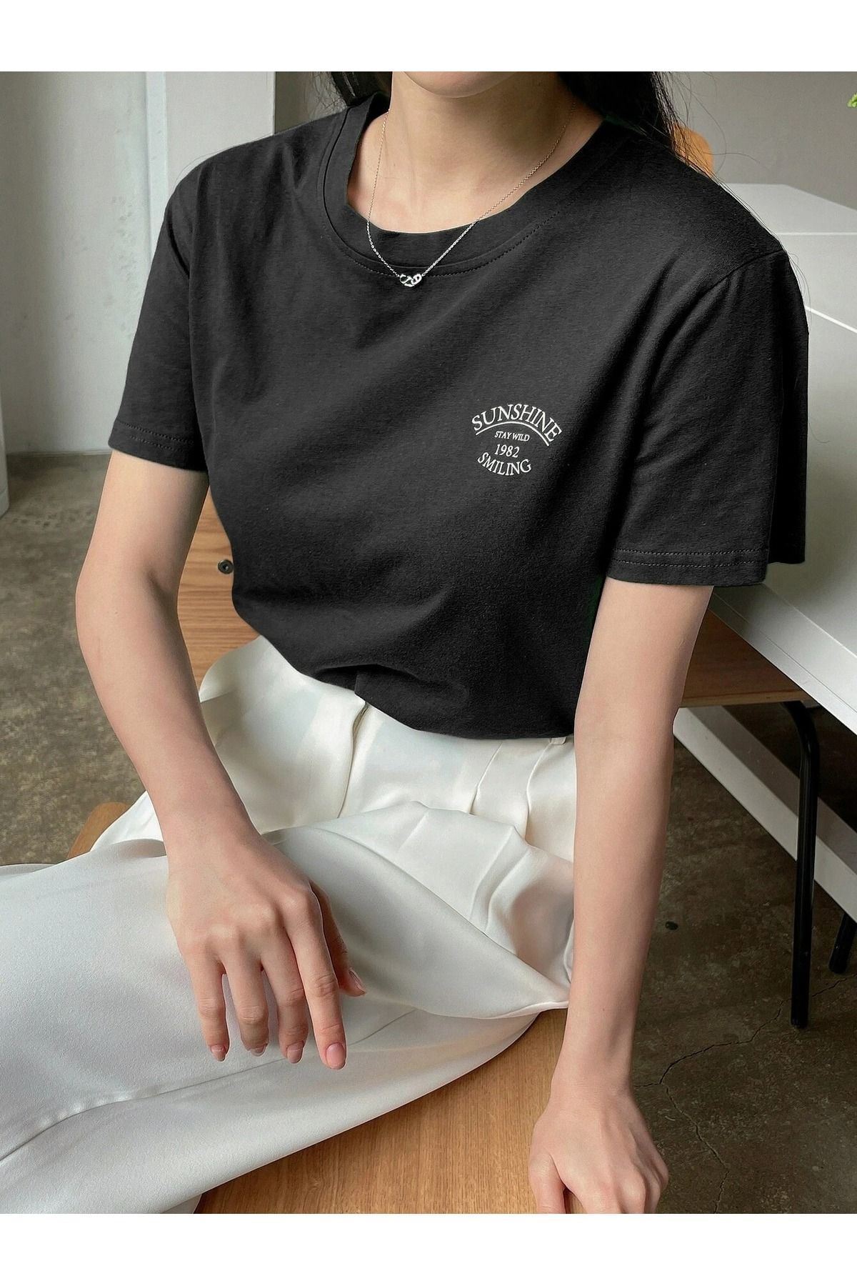 Sunshine 1982 Süprem T-Shirt - Siyah Baskılı Oversize Bisiklet Yaka Kısa Kol Tişört