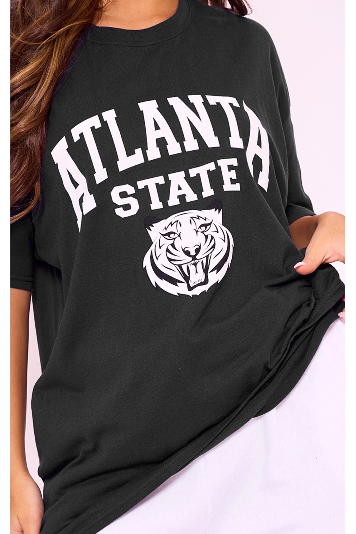 Günlük kullanım için ideal, siyah baskılı oversize bisiklet yaka kısa kol tişört.; Bisiklet yakası ile rahat bir kesim sunarken, kısa kollar yaz ayları için serinlik sağlar.; Yıkama sonrası bile canlılığını koruyan dijital baskı teknolojisiyle tasarlanmıştır.; Organik materyallerden üretilmiş olup sürdürülebilir moda anlayışına katkıda bulunur.; Regular siluetiyle her vücut tipine uyum sağlayarak konforlu bir giyim deneyimi vaat eder.; Unisex koleksiyona ait bu tişört, hem erkekler hem de kadınlar tarafından tercih edilebilir.; Biyeli detaylarıyla şık görünümü tamamlarken, transfer baskı tekniğiyle uzun süre solmayan desenler sunar.;