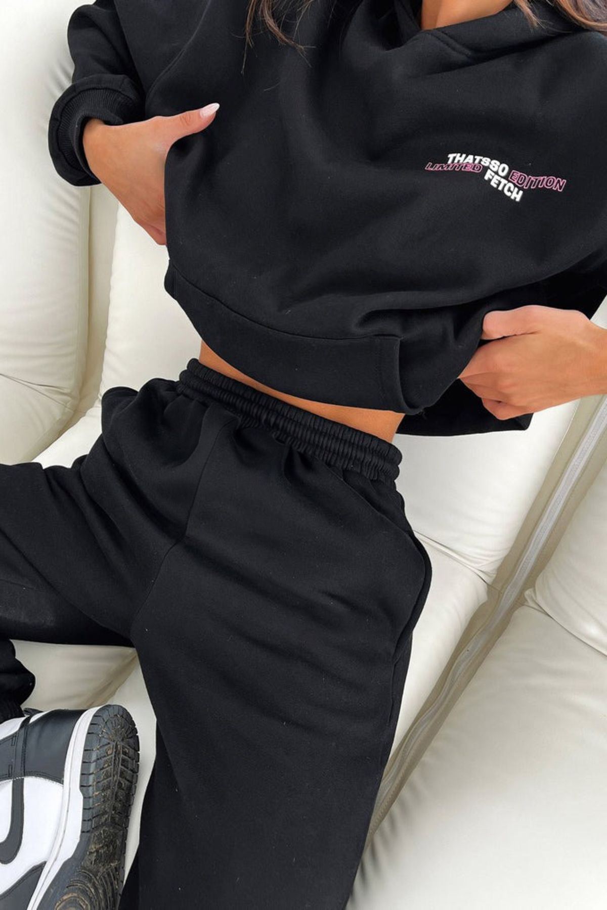 Uzun kollu ve paçalı tasarımı ile rahat hareket etme özgürlüğü sunar; Siyah baskılı deseniyle modern ve şık bir görünüm kazandırır; Lastikli paça yapısı sayesinde spor esnasında mükemmel uyum sağlar ve konforlu bir kullanım sunar; Kapüşonlu yaka tipi, soğuk havalarda baş ve boyun bölgesini korurken stil sahibi bir görünüm sağlar; Oversize kalıbı ile rahat bir oturuş sunarken, her vücut tipine uyum sağlar; Yan cepleri pratik kullanım için ekstra depolama alanı sunar; Örme kumaş tipi, esneklik ve dayanıklılık açısından üstün konfor sağlar; Sportswear koleksiyonunun parçası olarak tasarlanmıştır; hem spor salonunda hem de günlük kullanımda idealdir; Tüm yaş gruplarına hitap eden geniş kullanıcı yelpazesi ile herkes için uygundur;