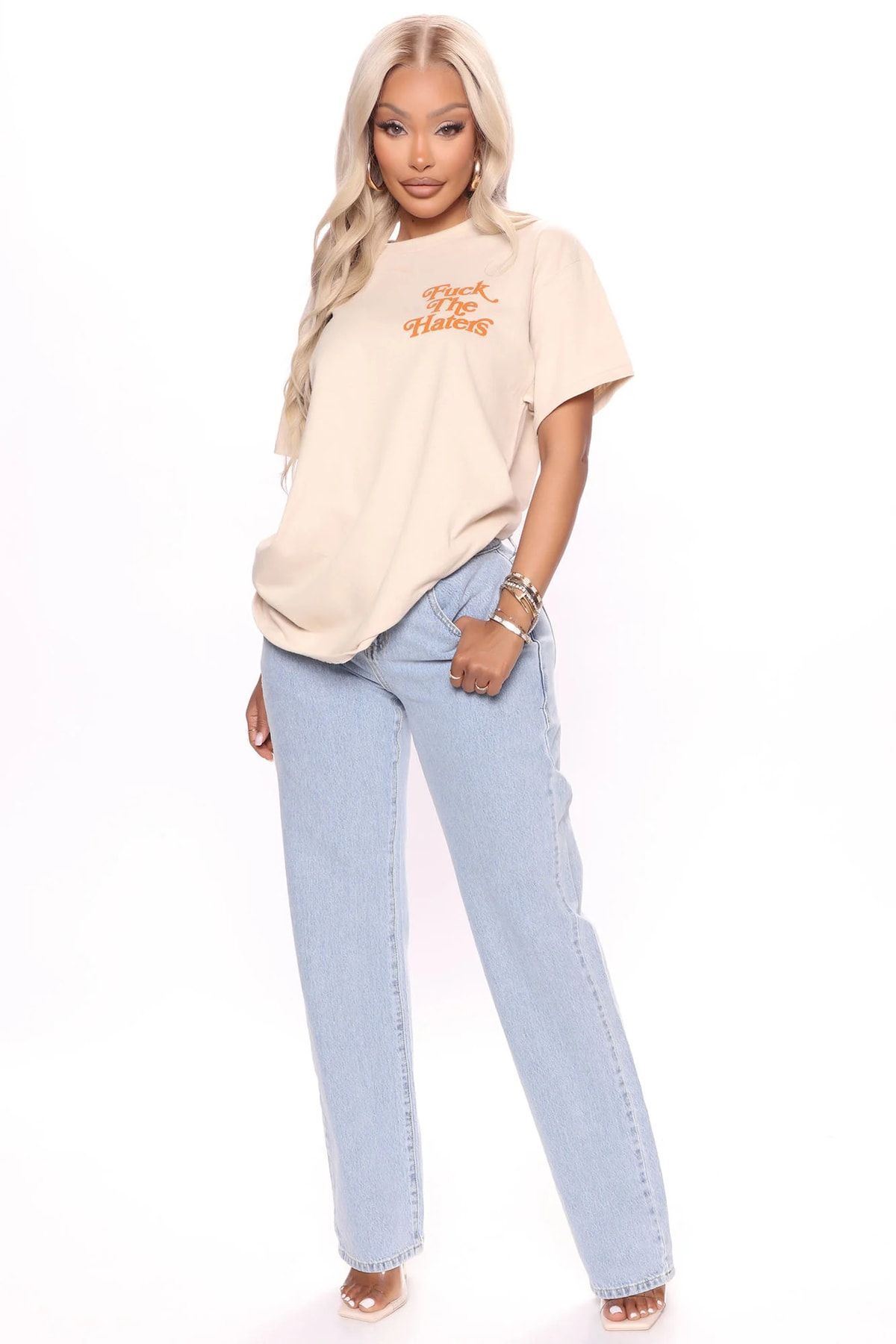 The Hates T-shirt - Vizon Baskılı Oversize Bisiklet Yaka Kısa Kol Tişört