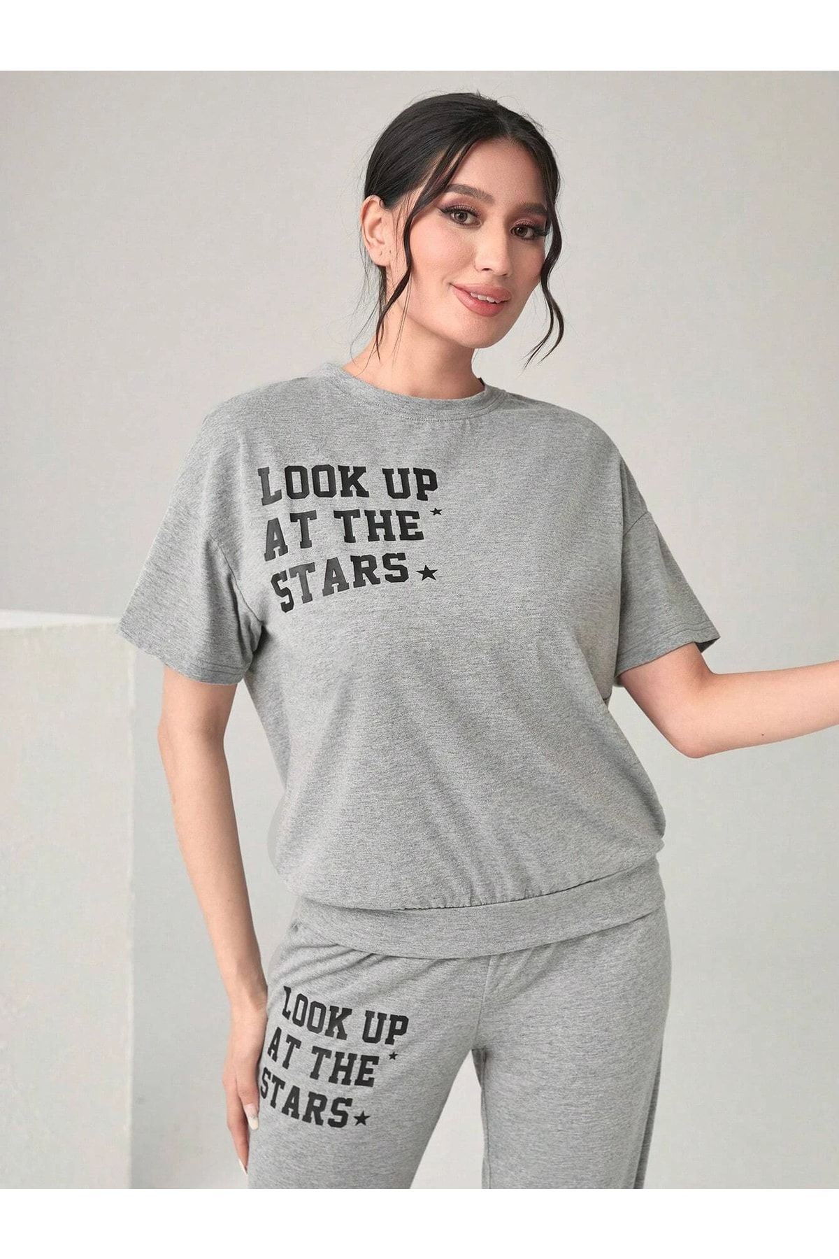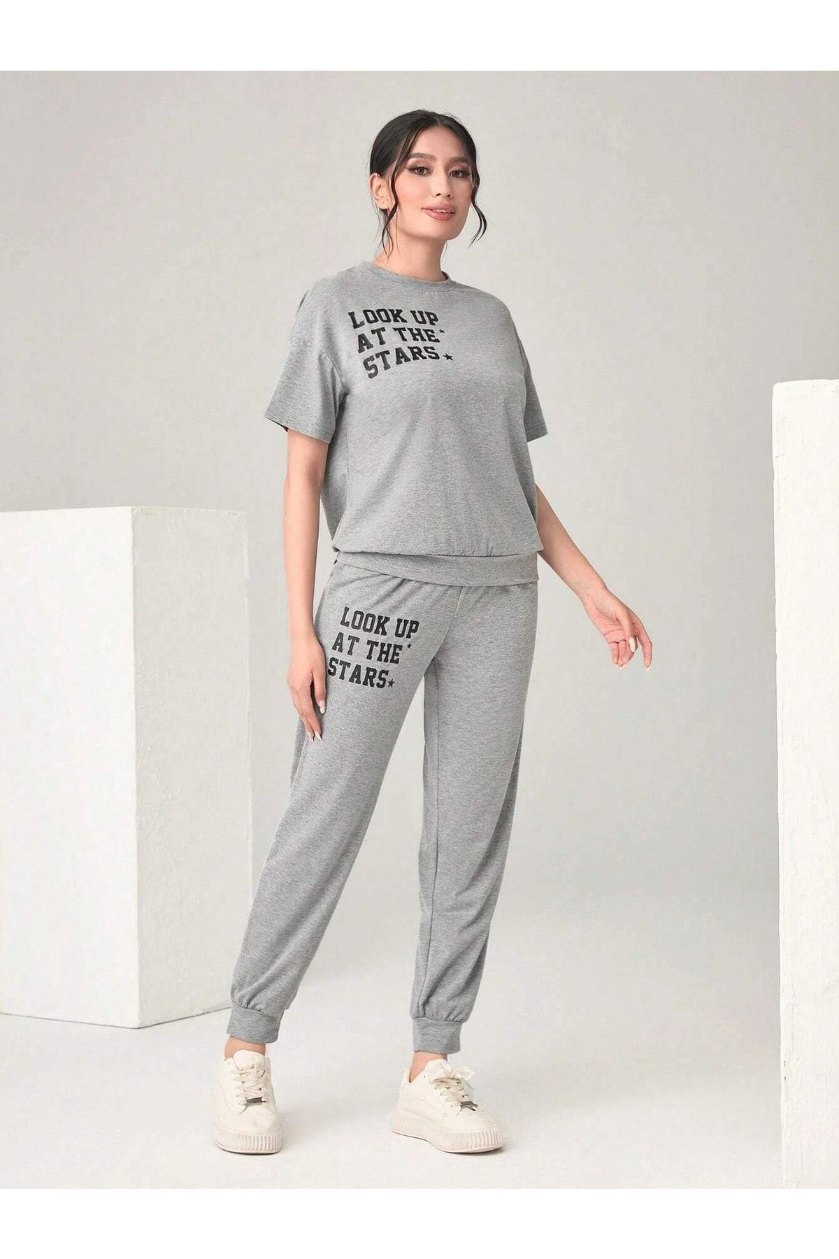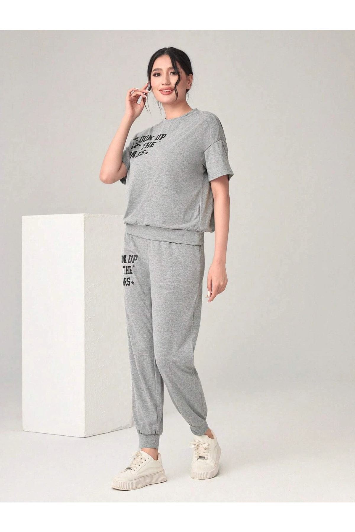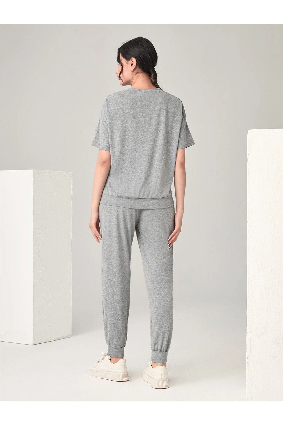 The Stars Ribana 2li T-shirt Eşofman Altı Jogger Gri Alt Üst Eşofman Takım Oversize Bisiklet Yaka