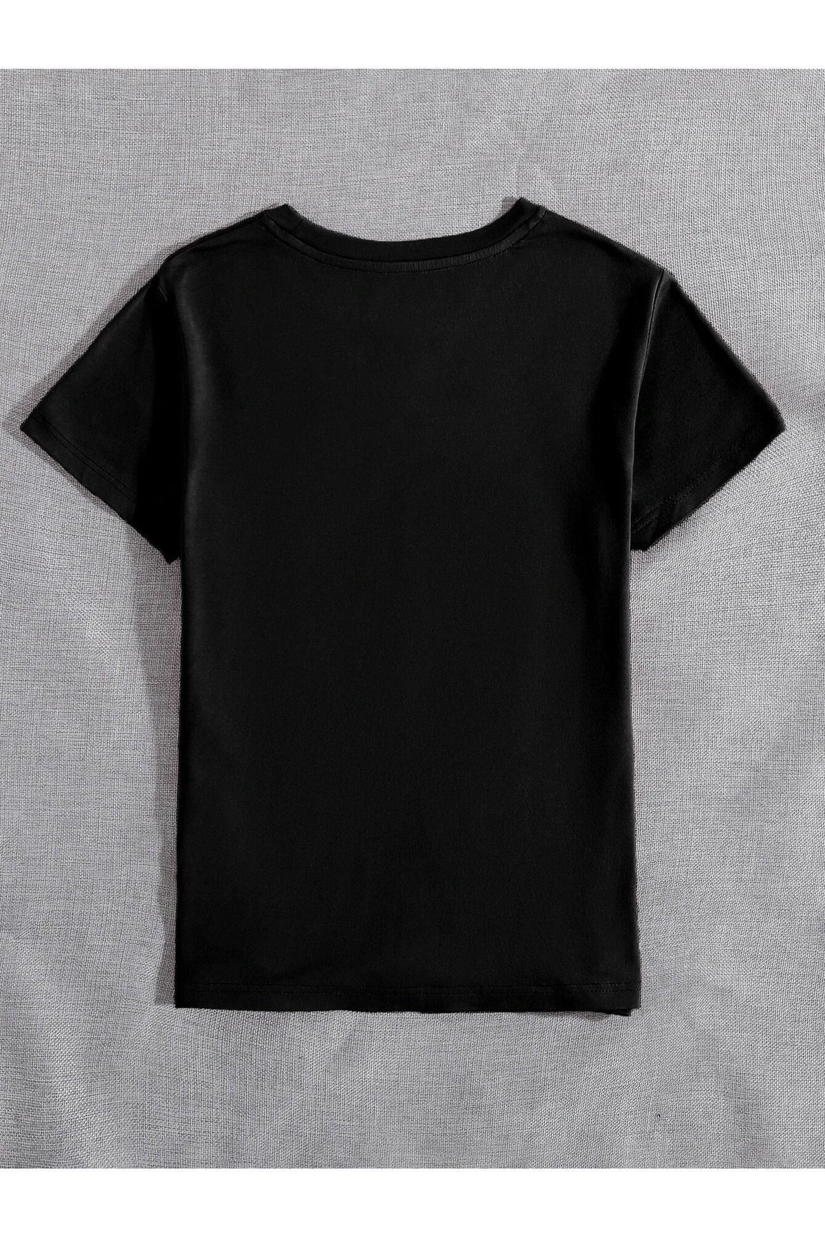 Uçan Kelebekler Süprem T-Shirt - Siyah Baskılı Oversize Bisiklet Yaka Kısa Kol Tişört