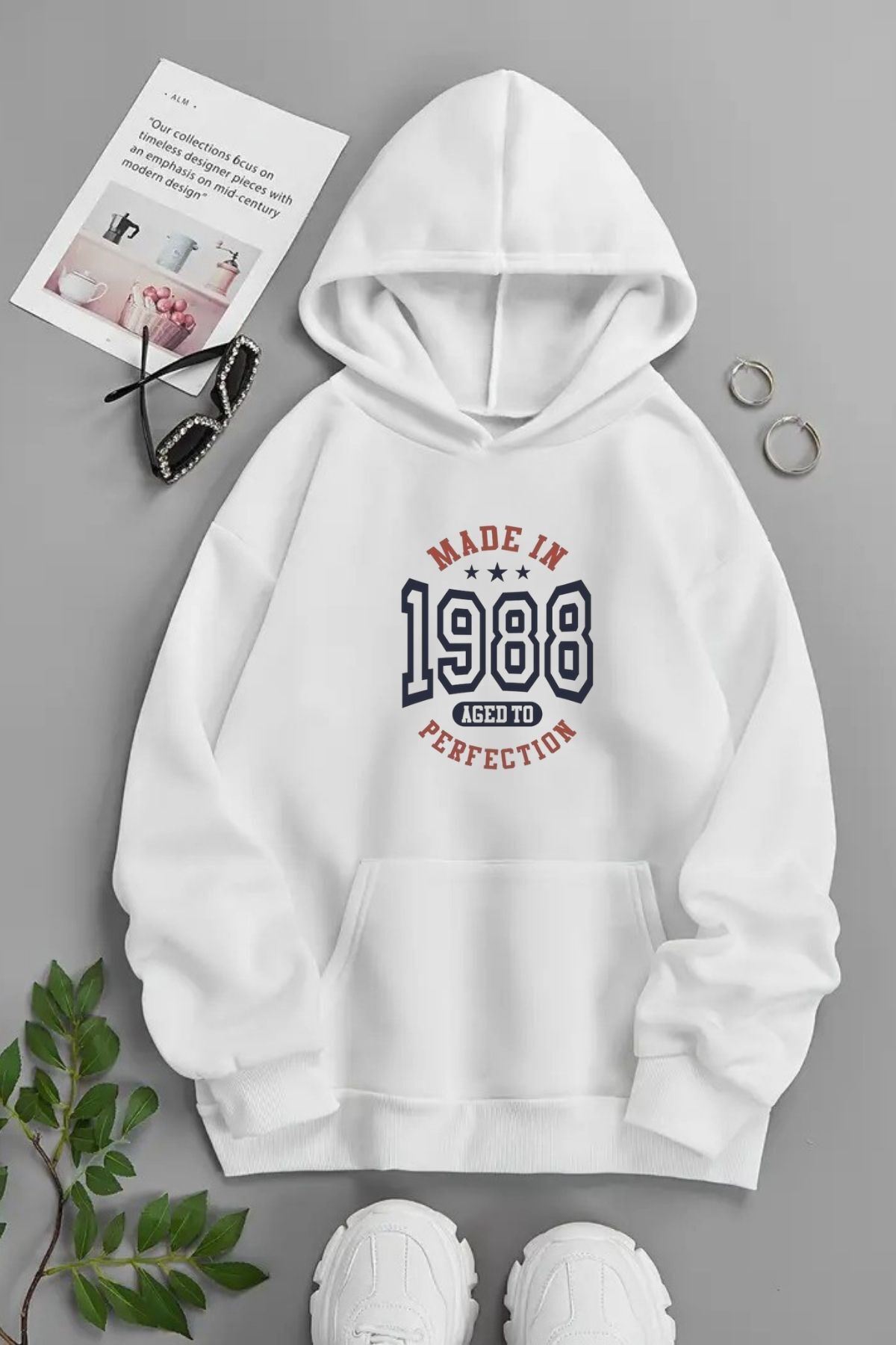 Unisex Beyaz Kapüşonlu Sweatshirt – Made İn Perfection ,Baskılı Şardonlu Kalın Kumaş