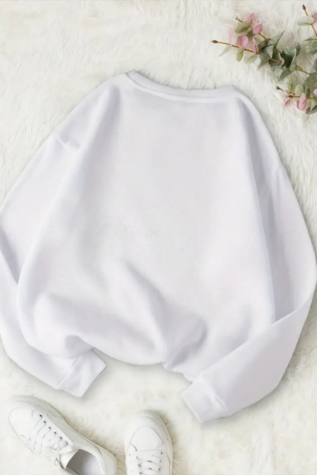 Unisex Beyaz LİMİTED EDİTİON Baskılı Bisiklet Yaka Sweatshirt- Kışlık Şardonlu Kumaş