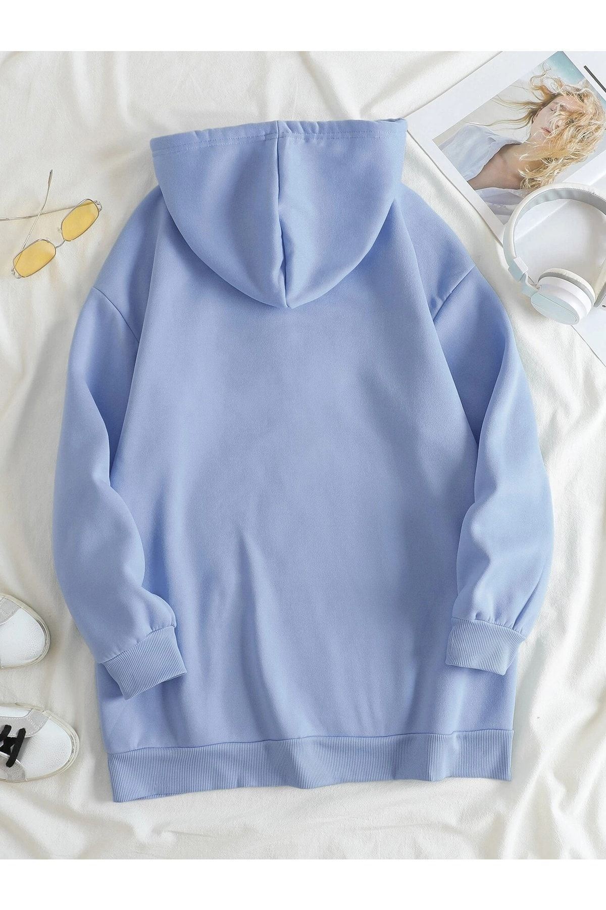 Bebe mavisi oversize sweatshirt. ; S-M-L-Xl beden aralığı. ; Pamuk kumaş. ; Dijital baskı. ; 30 derece de tersten yıkama yapınız. ; Clayes markası ile gönderim yapılacaktır. ;