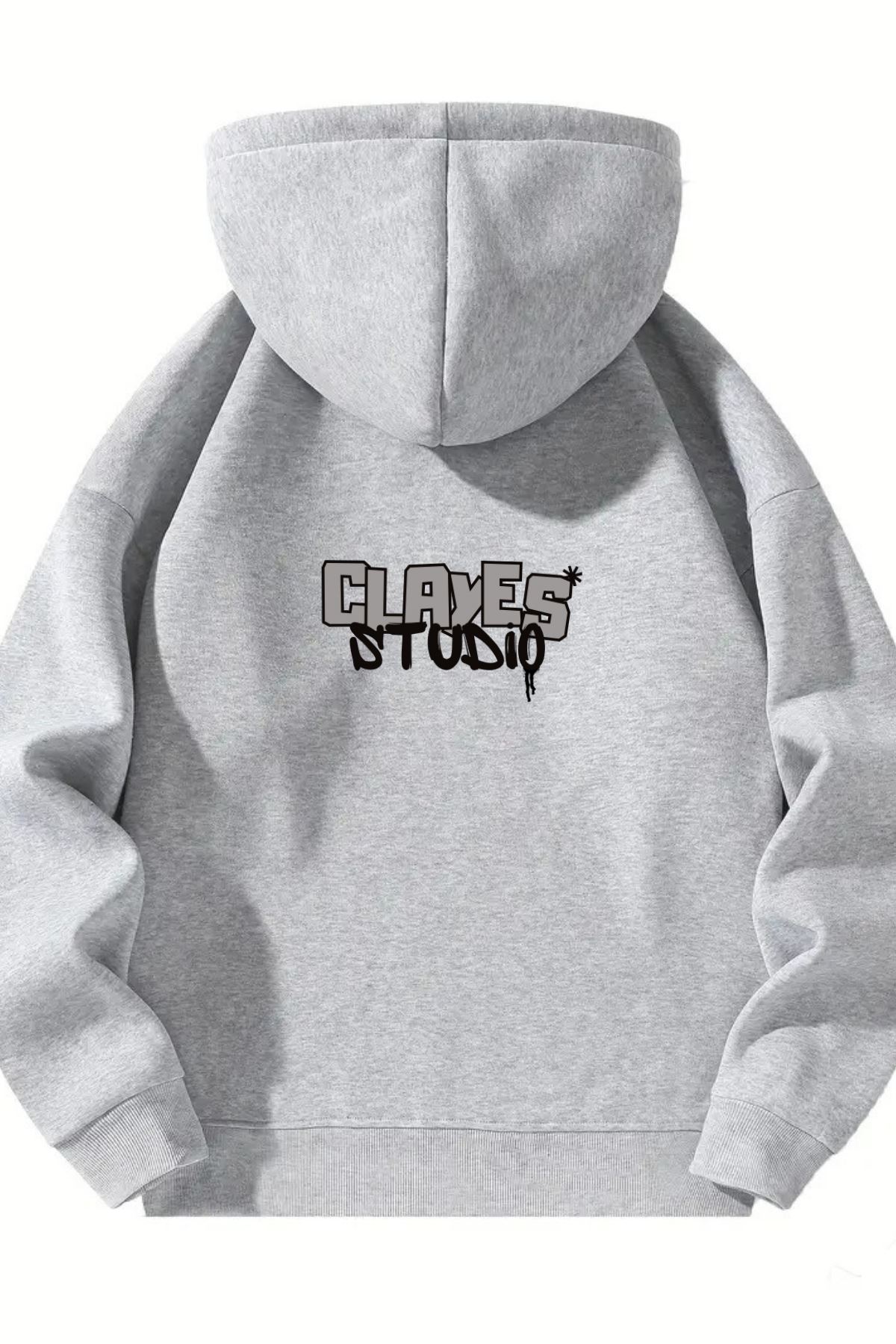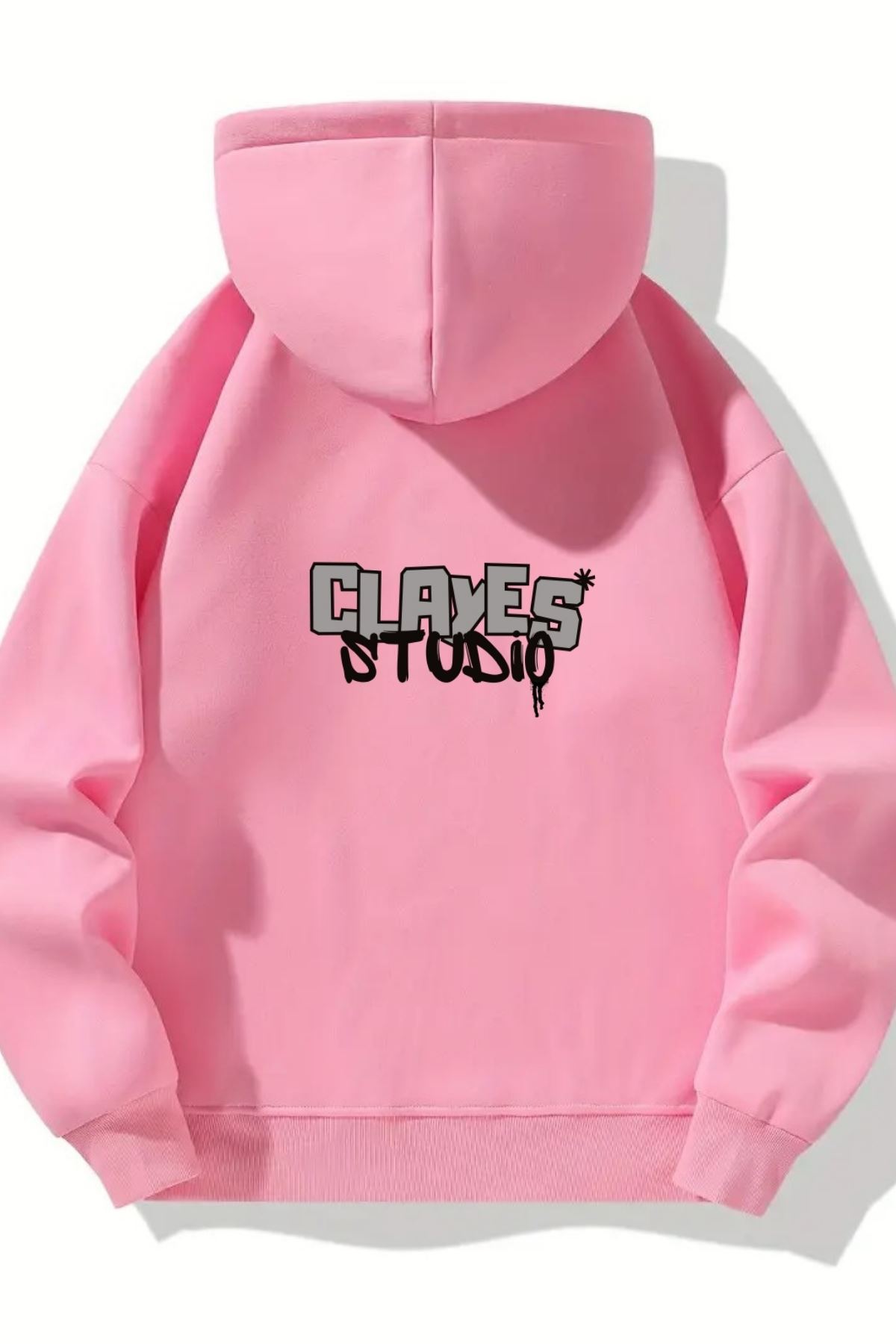 Unisex Fermuarlı Kapüşonlu Oversize Tasarım Baskılı Sweatshirt – Siyah / Gri / Pembe