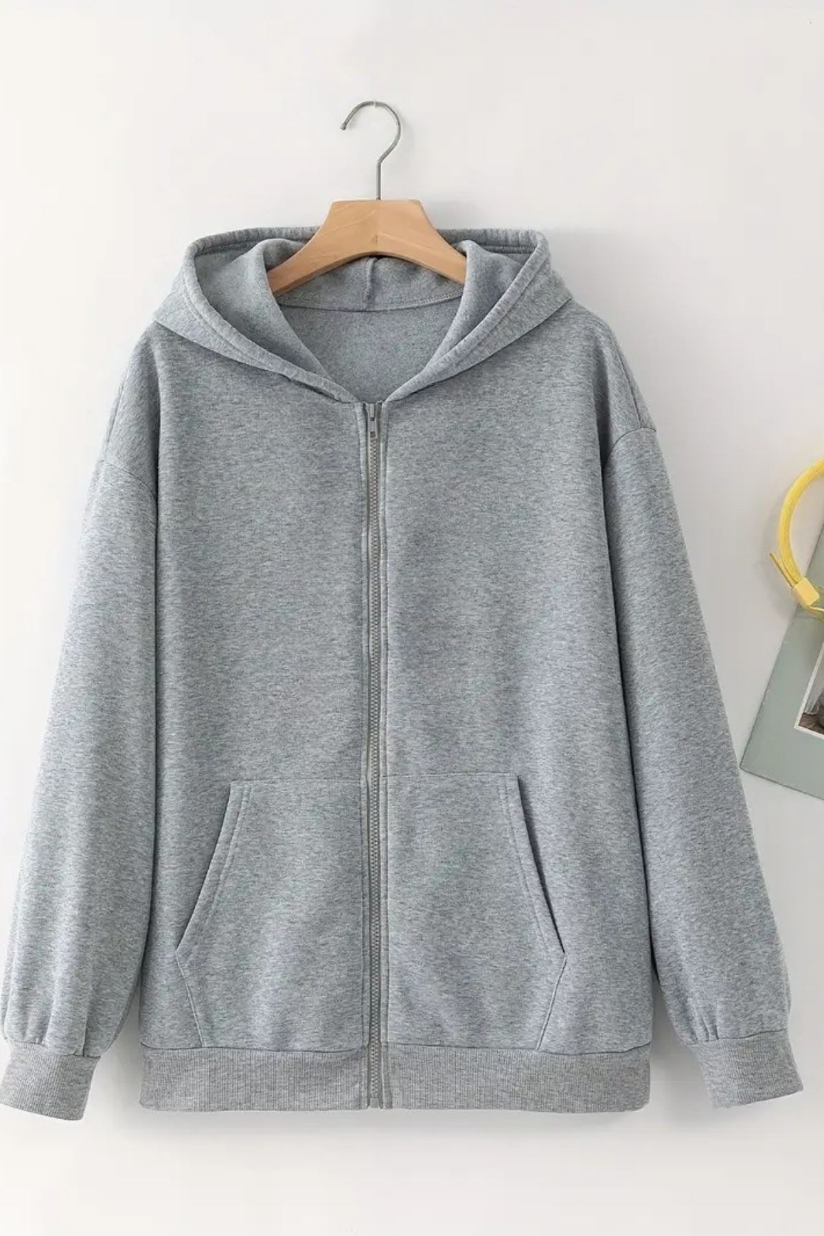 Unisex Gri Kapüşonlu Fermuarlı HIRKA – BASİC , Şardonlu Kalın Kumaş
