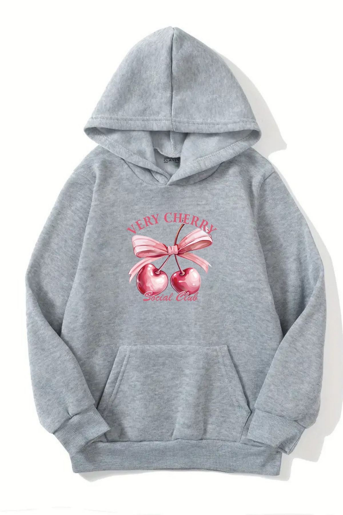 Unisex Gri Kapüşonlu Sweatshirt – Very Cherry ,Şardonlu Kalın Kumaş