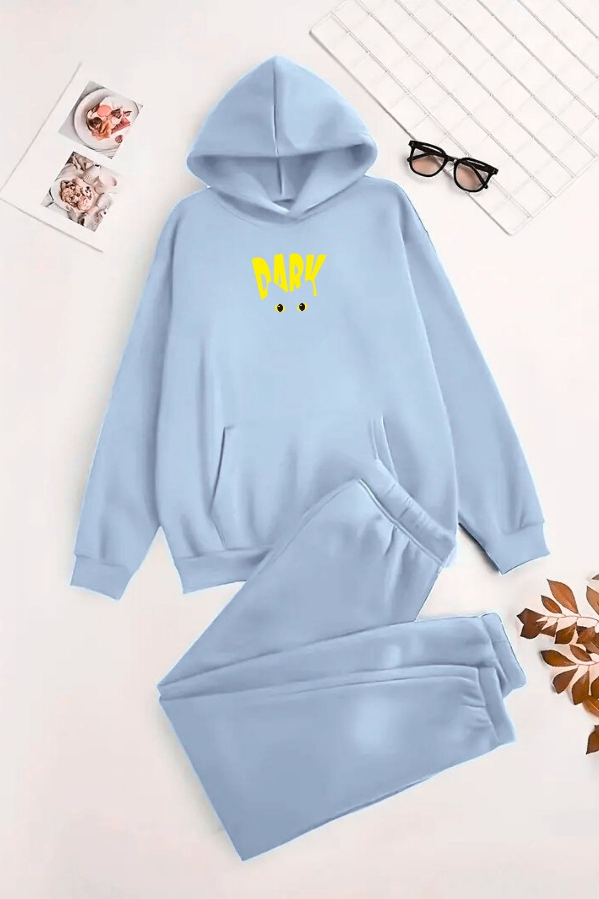 Unisex Kapüşonlu BebeMavi Eşofman Takımı DARK CAT Baskılı- Kışlık Şardonlu Kumaş