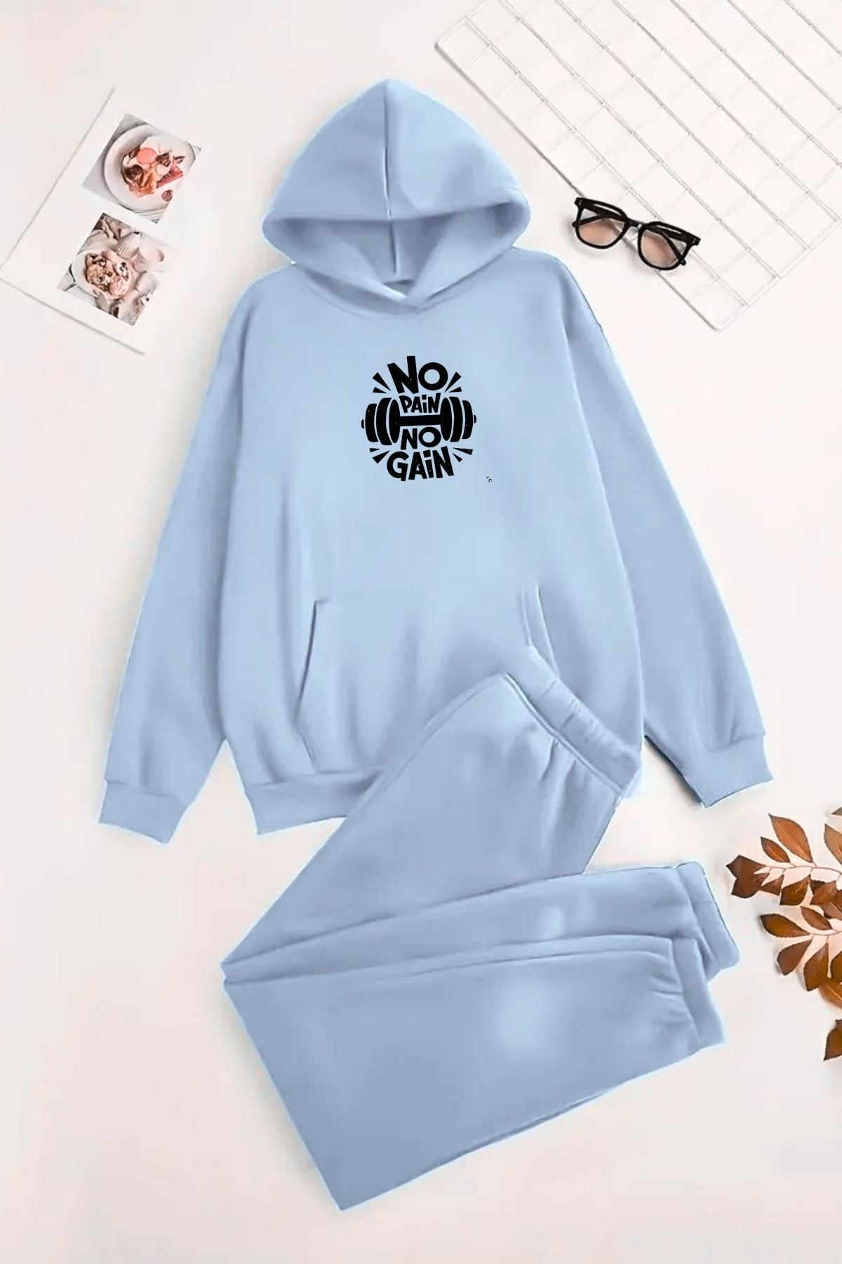 Unisex Kapüşonlu BebeMavi Eşofman Takımı NO PAİN NO GAİN Baskılı- Kışlık Şardonlu Kumaş