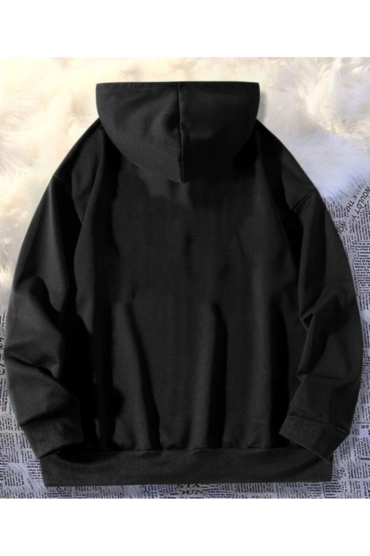 Rahat kesimi ve oversize siluetiyle her vücut tipine uyum sağlayan siyah kapüşonlu sweatshirt, günlük kullanım için idealdir; Sırt baskısı detayı ile modern ve şık bir görünüm sunar, dijital baskı tekniği sayesinde canlı ve net desenler elde edilir; Kanguru cep tasarımı hem fonksiyonel saklama alanı sağlar hem de stil sahibi bir dokunuş katar; 2 iplik rejenere şardonlu dokuma tipi, dayanıklılığı artırırken yumuşak bir dokunuş hissi verir; %100 organik pamuk materyali ile cildinize nefes aldırırken sürdürülebilir moda anlayışını destekler; Uzun kollu tasarım soğuk havalarda ekstra koruma sağlar ve rahat hareket etme olanağı tanır; Relaxed kesimi sayesinde konforlu bir kullanım sunarken, sportswear koleksiyonunun parçası olarak spor şıklığını günlük yaşama taşır; Her yaş grubuna hitap eden unisex koleksiyon parçası olarak herkes tarafından rahatlıkla tercih edilebilir;