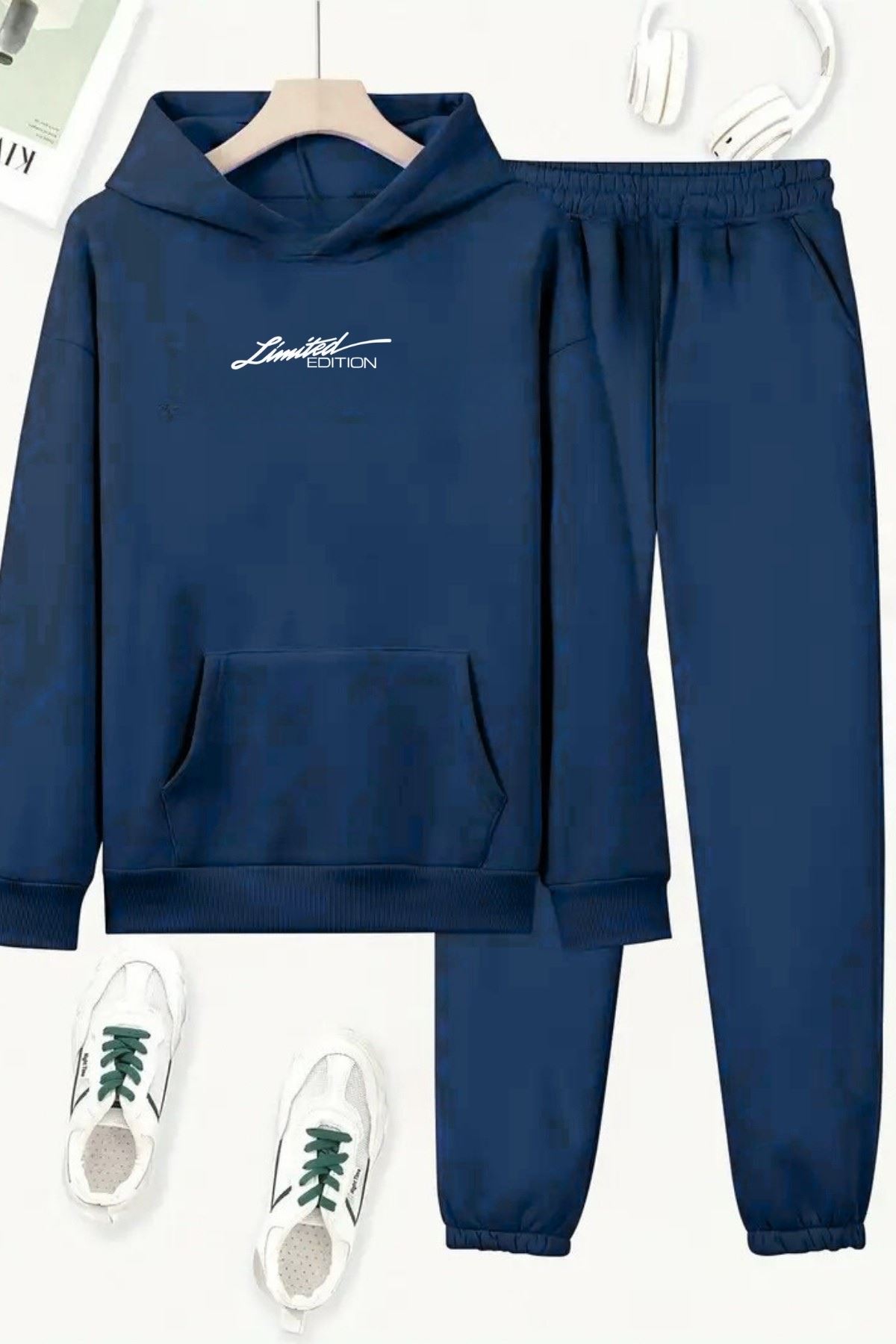 Unisex Lacivert LİMİTED EDİTİON Baskılı Eşofman Kapüşon- Kışlık Şardonlu Kumaş