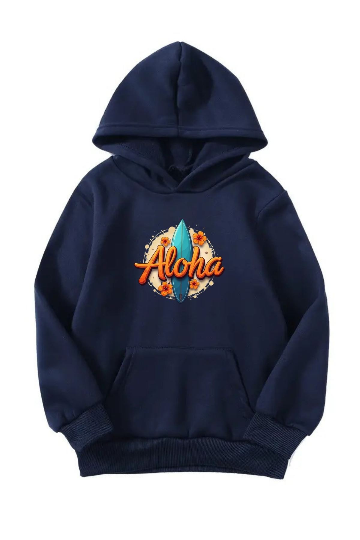 Unisex Oversize Şardonlu Kışlık Aloha Kaykay Baskılı Kapüşonlu Sweatshirt - Lacivert