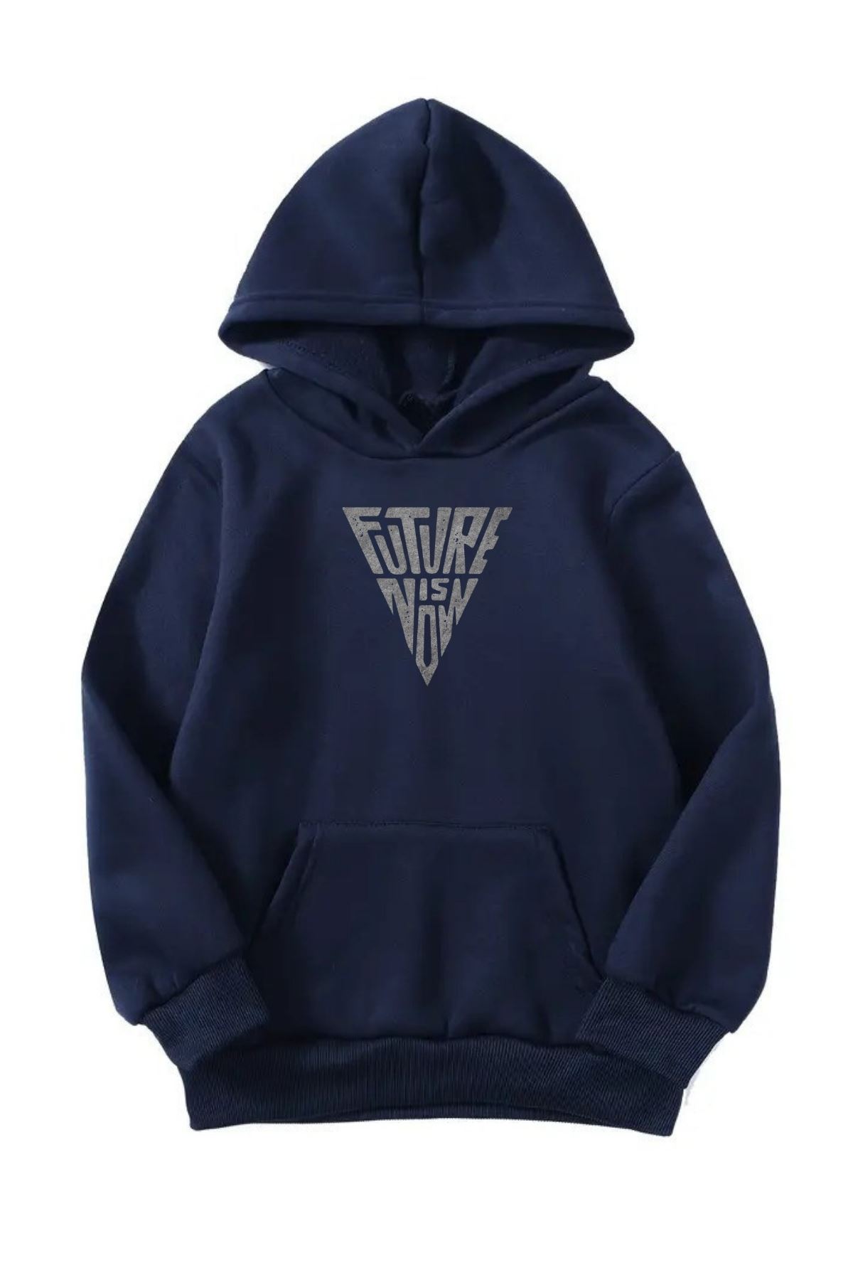 Unisex Oversize Şardonlu Kışlık Future Üçgen Baskılı Kapüşonlu Sweatshirt - Lacivert