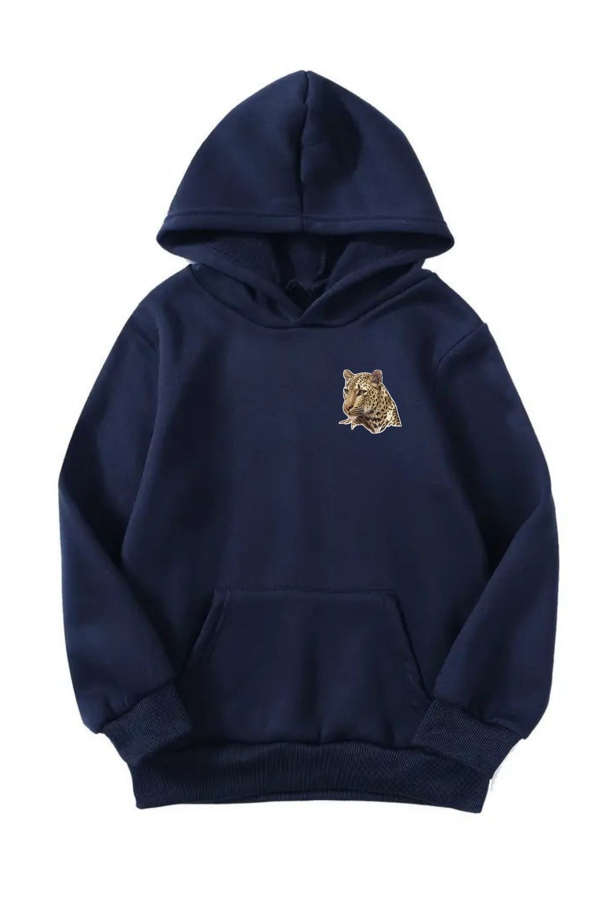 Unisex Oversize Şardonlu Kışlık Jaguar Kurdela Minimal Baskılı Kapüşonlu Sweatshirt - Lacivert