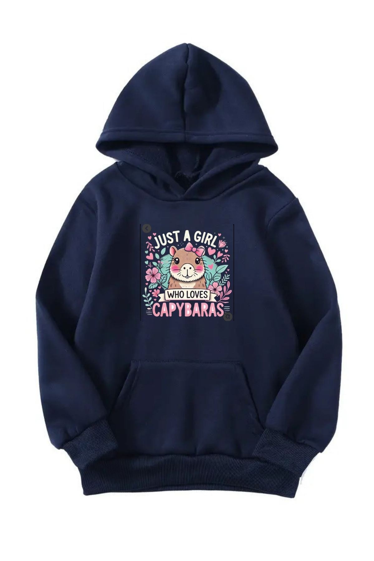 Unisex Oversize Şardonlu Kışlık Just a Girl Baskılı Kapüşonlu Sweatshirt - Lacivert