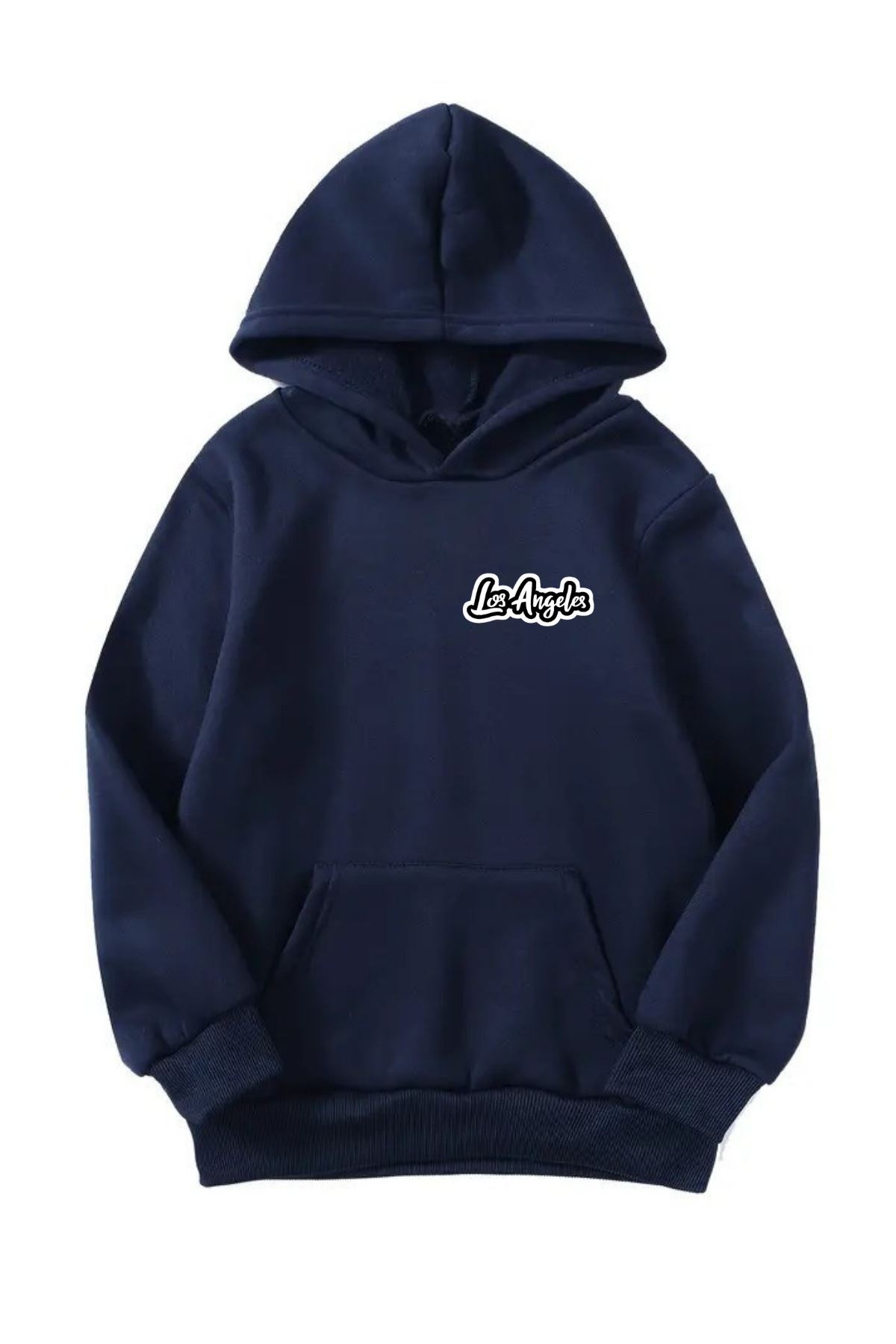Unisex Oversize Şardonlu Kışlık Los Angelas Minimal Baskılı Kapüşonlu Sweatshirt - Lacivert