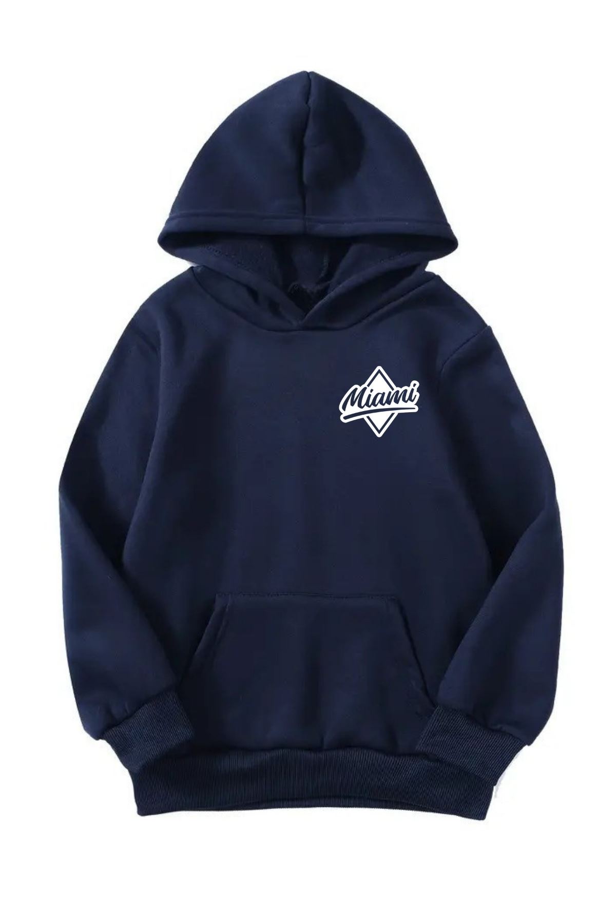Unisex Oversize Şardonlu Kışlık Miami Minimal Baskılı Kapüşonlu Sweatshirt - Lacivert