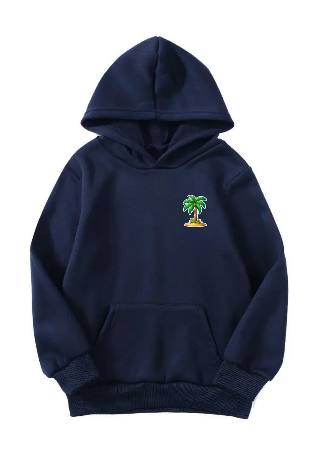 Unisex Oversize Şardonlu Kışlık Palmiye Minimal Baskılı Kapüşonlu Sweatshirt - Lacivert