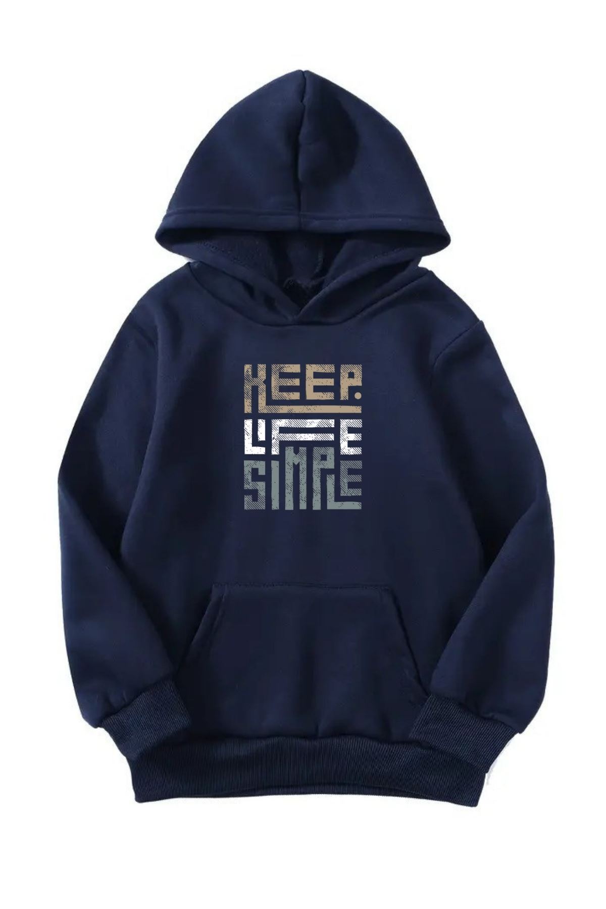 Unisex Oversize Şardonlu Kışlık Palmiye Minimal Baskılı Kapüşonlu Sweatshirt - Lacivert