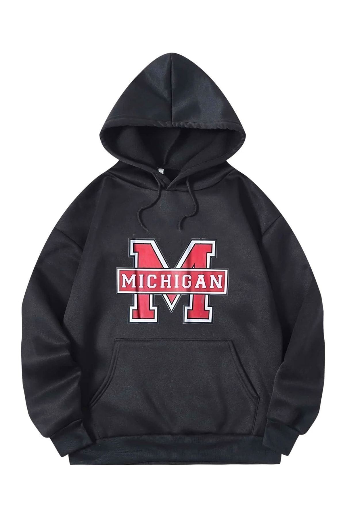 Rahat kesimi ile dikkat çeken oversize m michigan kapüşonlu sweatshirt, günlük kullanım için idealdir.; Bağcıklı tasarımı sayesinde farklı stiller yaratabilir ve kişisel tarzınıza kolayca uyum sağlar.; Kanguru cep detaylarıyla fonksiyonellik kazanan bu sweatshirt, eşyalarınızı yanınızda taşımanız için pratik bir çözüm sunar.; Dijital baskı teknolojisiyle üretilmiş canlı ve net desenler, uzun süre solma yapmadan dayanıklılık gösterir.; Pamuk polyester karışımından yapılan materyali, konforlu bir giyim deneyimi sağlarken aynı zamanda dayanıklılığı artırır.; Siyah rengiyle kolayca kombinlenebilir ve zamansız bir şıklık sunar.; Kapüşonlu yaka tipi soğuk havalarda ekstra koruma sağlar ve şık bir görünüm kazandırır.; Unisex koleksiyona ait bu sweatshirt, hem erkeklerin hem de kadınların rahatça tercih edebileceği bir üründür.; Uzun boy kesimi ile bacaklarınızın tamamını sararak sıcak tutar ve modern bir siluet oluşturur.; Uzun kollu tasarımı mevsimsel geçişlerde ideal sıcaklık dengesi sağlar.; Örme kumaş tipi esnekliği arttırarak hareket özgürlüğünüzü kısıtlamaz.; Tek parça halinde gelen bu sweatshirt, minimalist bir gardırop düzenine sahip olanlar için mükemmeldir.; Sokak stilinin vazgeçilmez parçası olan bu sweatshirt ile günlük giyiminizi canlandırabilirsiniz.;