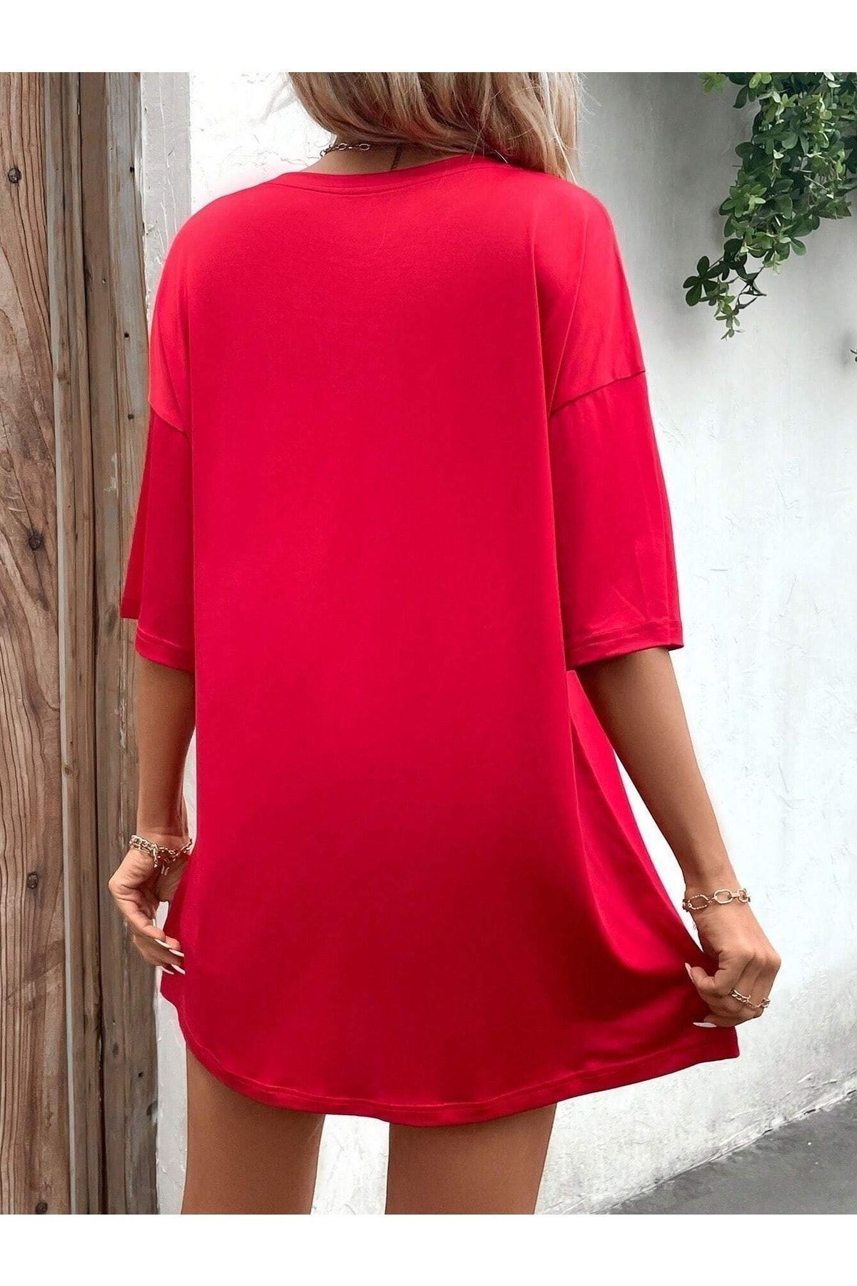 Us California T-Shirt - Kırmızı Baskılı Oversize Bisiklet Yaka Kısa Kol