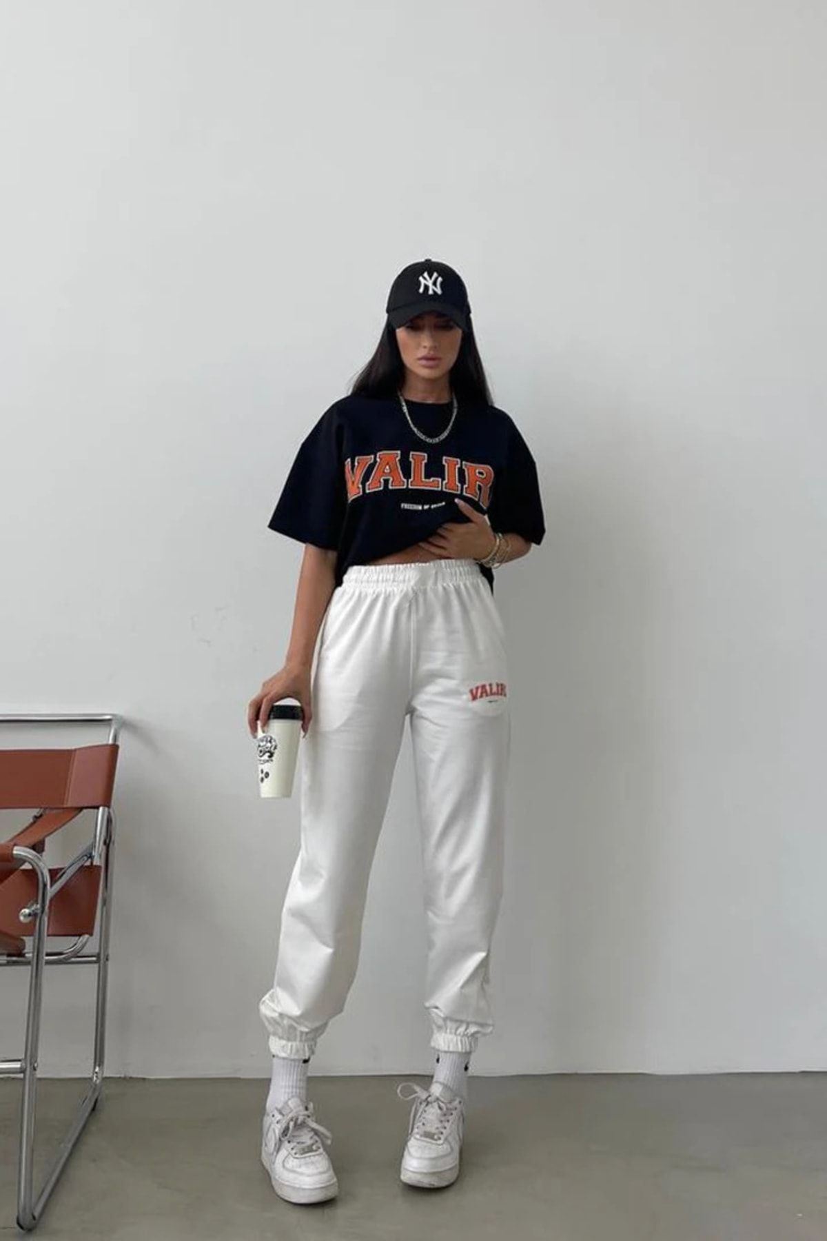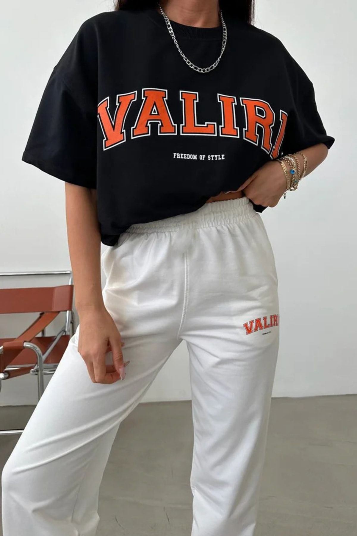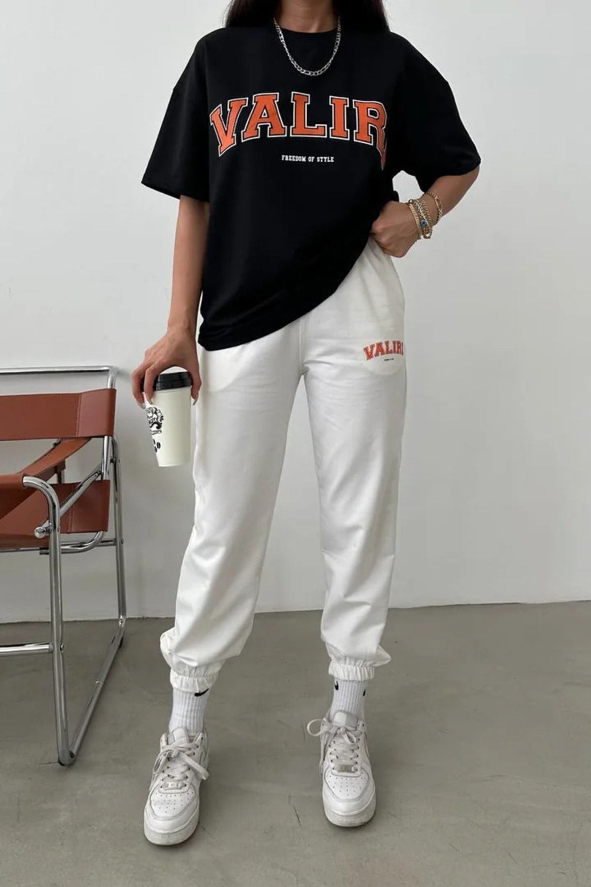 Valiri Siyah T-shirt Beyaz Eşofman Altı Jogger- Baskılı Alt Üst Eşofman Takım Oversize Bisiklet Yak