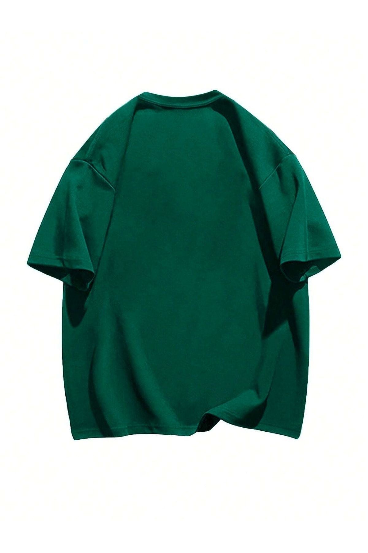 Vintage College T-Shirt - Yeşil Baskılı Oversize Bisiklet Yaka Kısa Kol