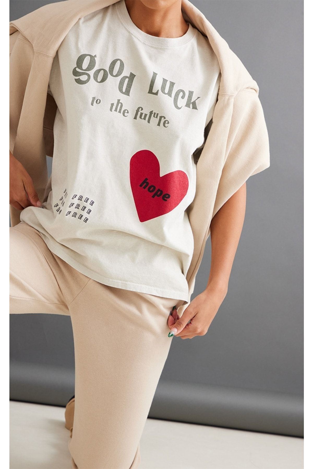 Vizon Oversize Hope T-shirt - Oversize Baskılı