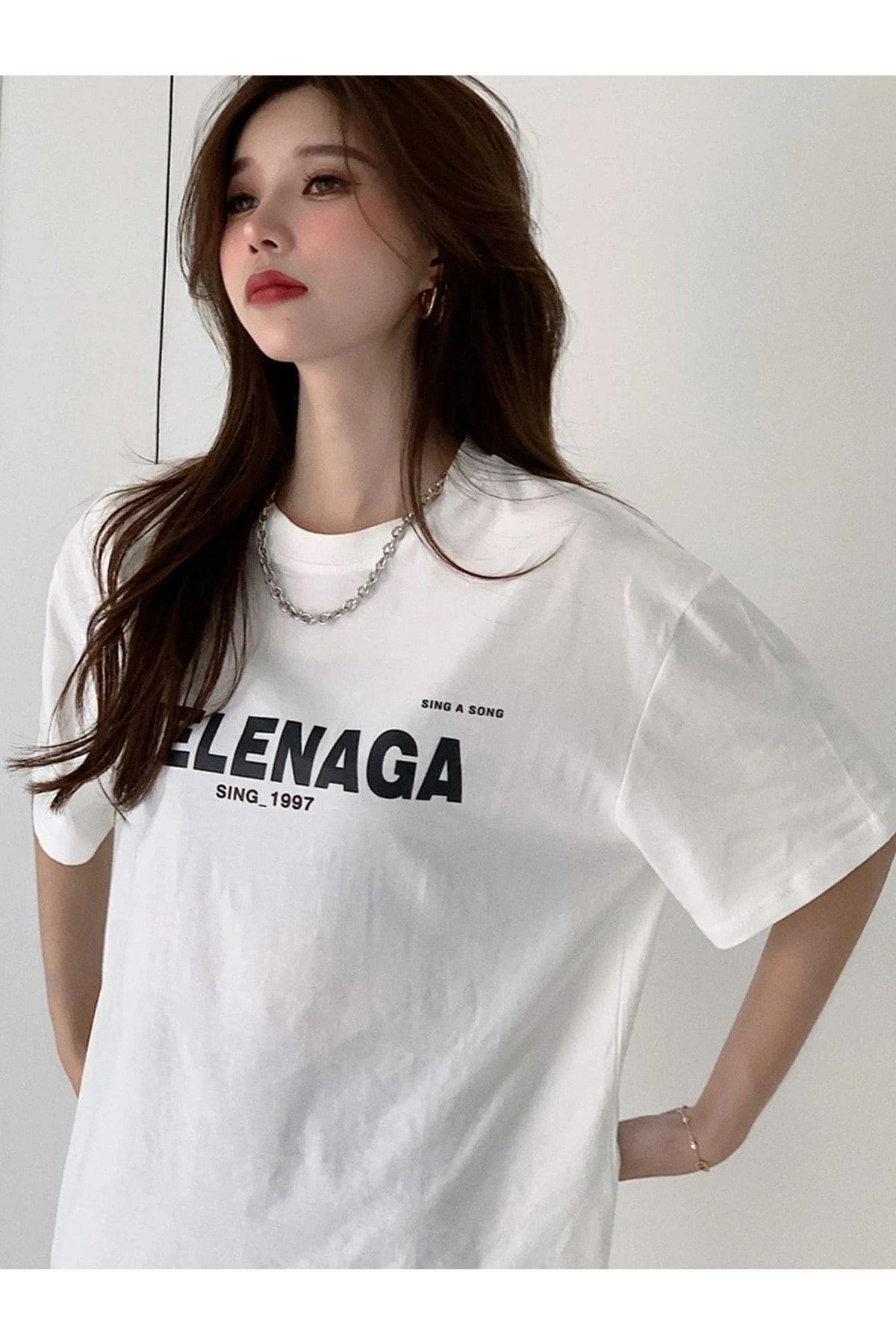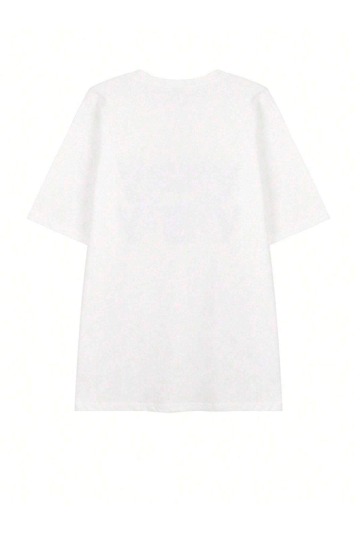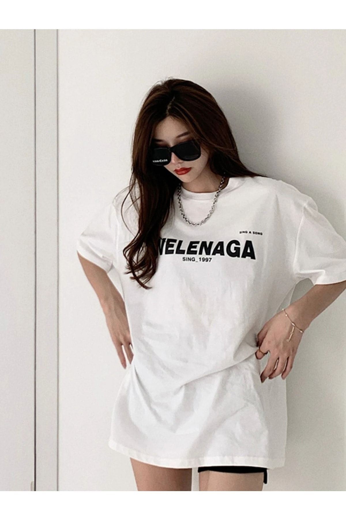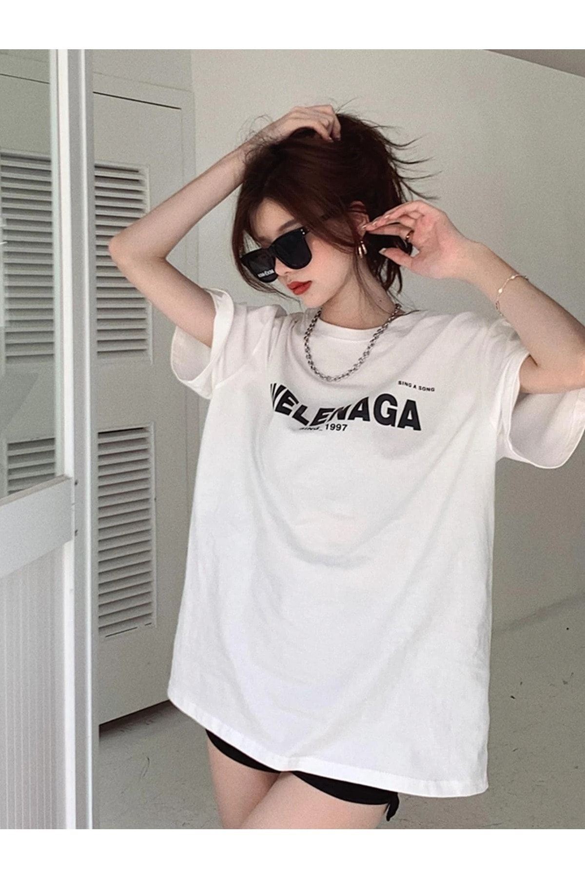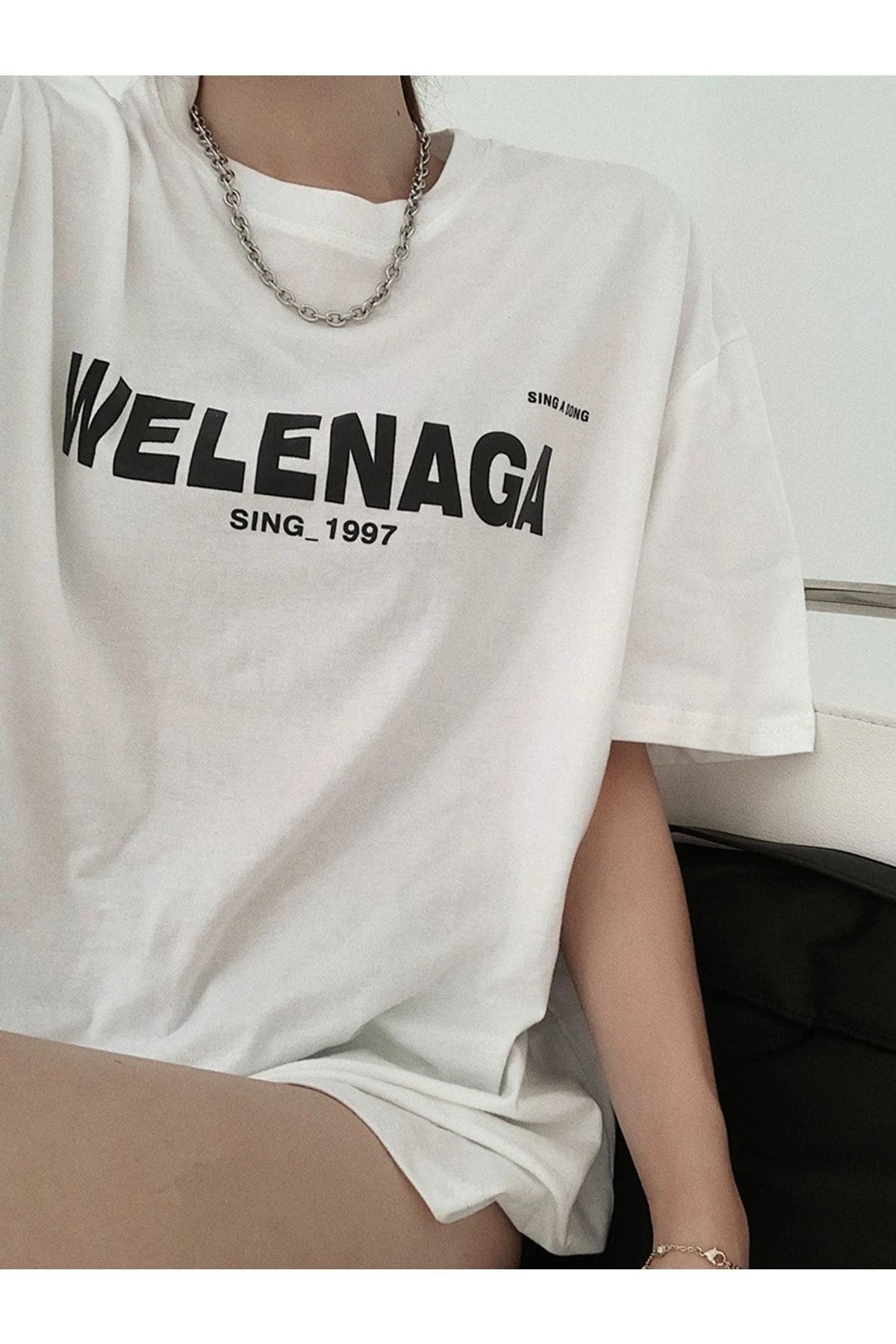 Welenaga T-Shirt - Beyaz Baskılı Oversize Bisiklet Yaka Kısa Kol