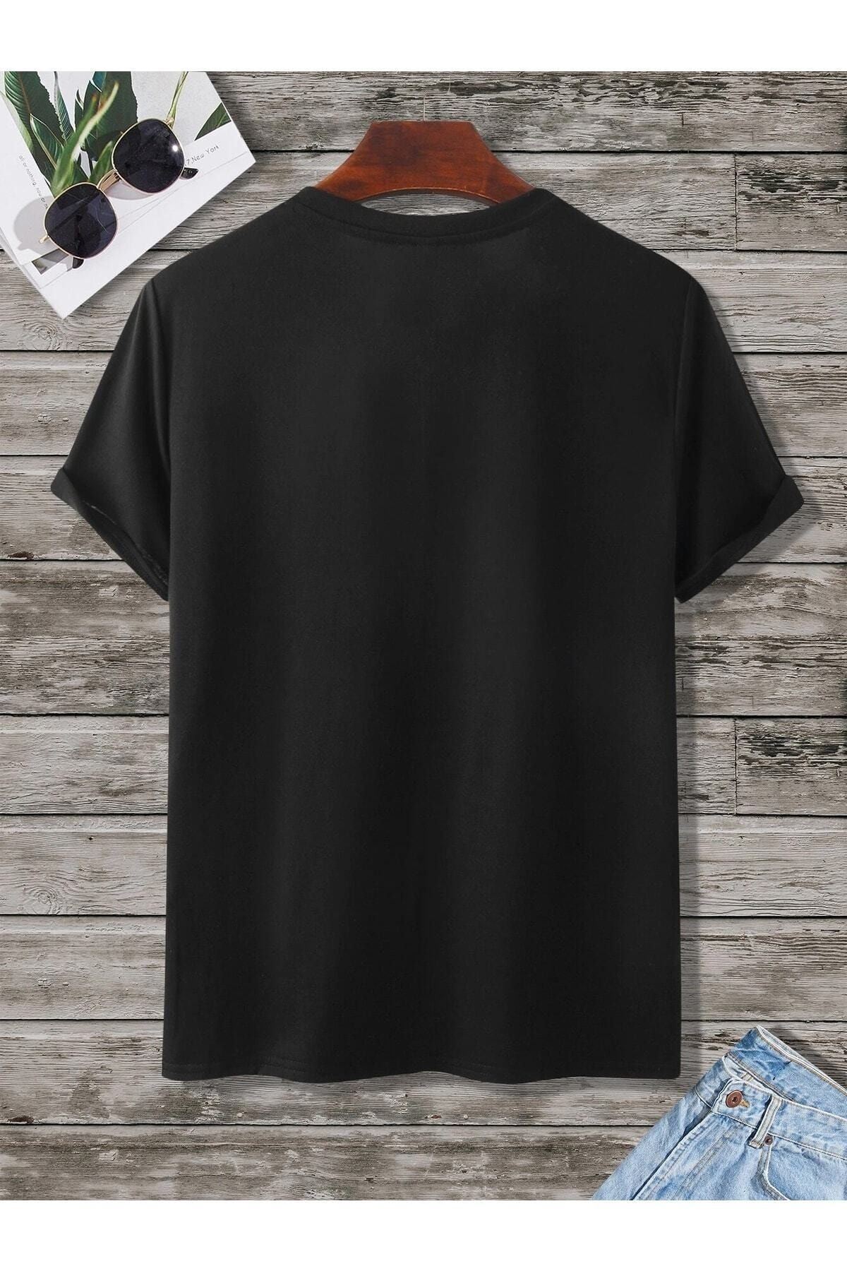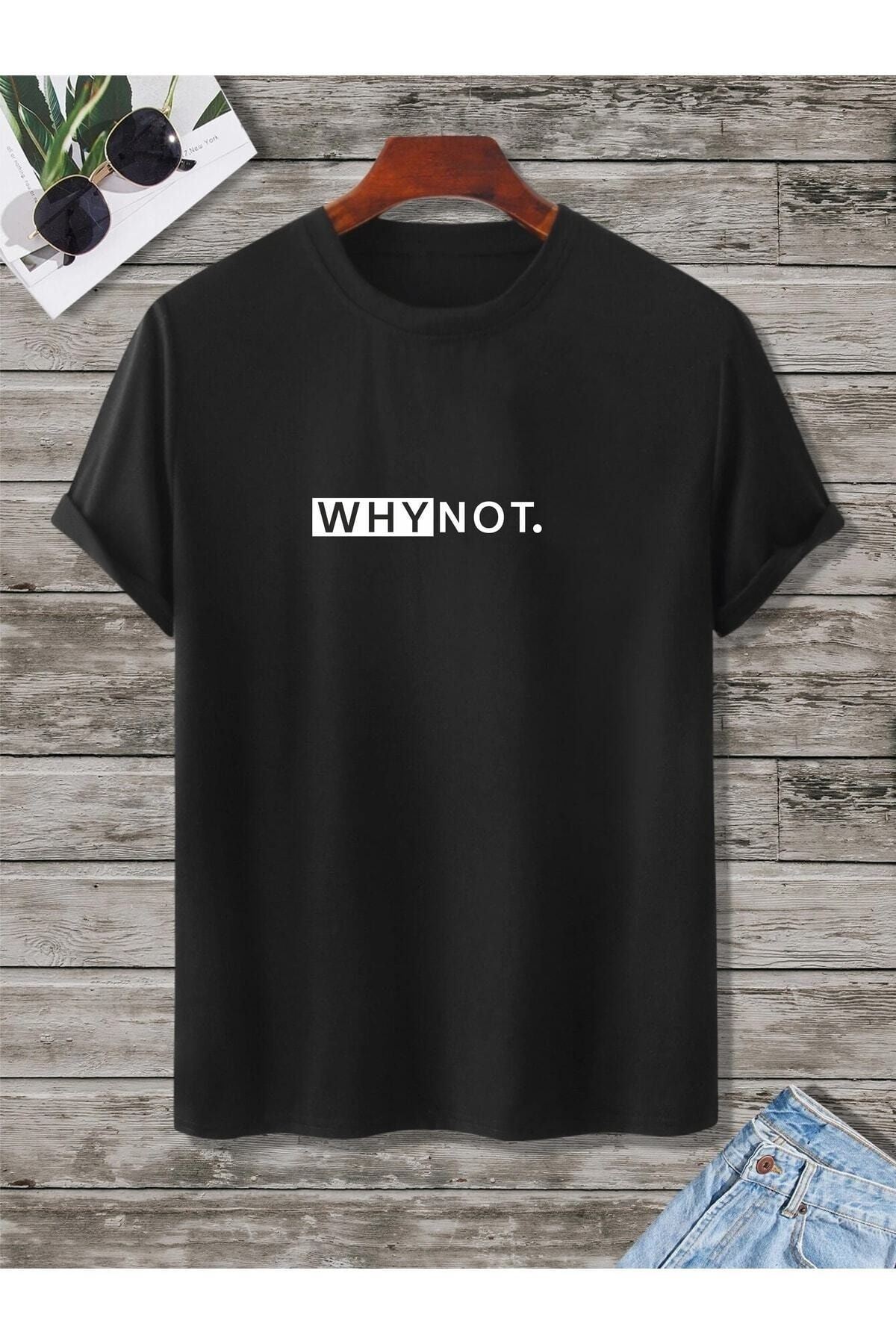 Why Not T-shirt - Siyah Baskılı Oversize Bisiklet Yaka Kısa Kol Tişört