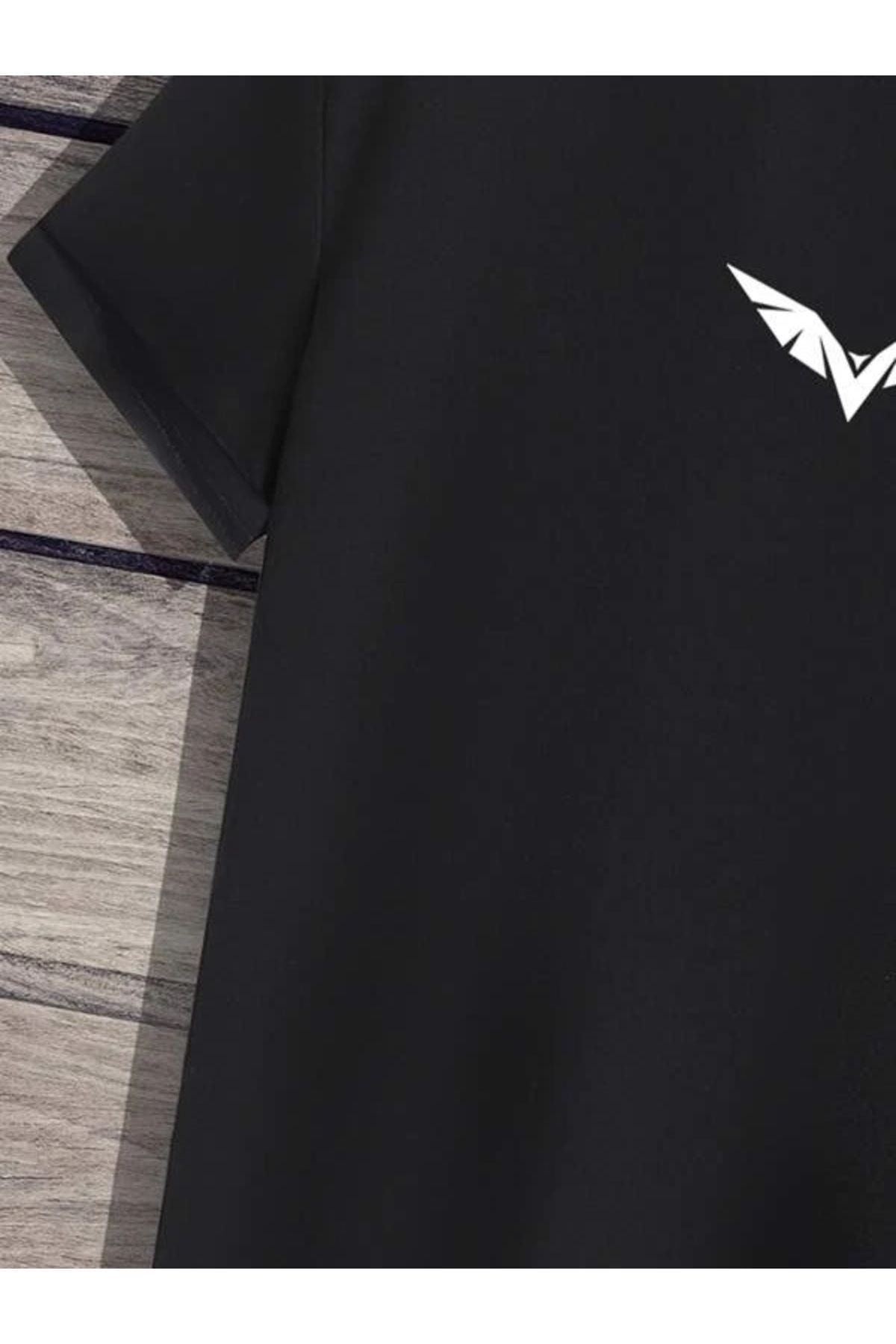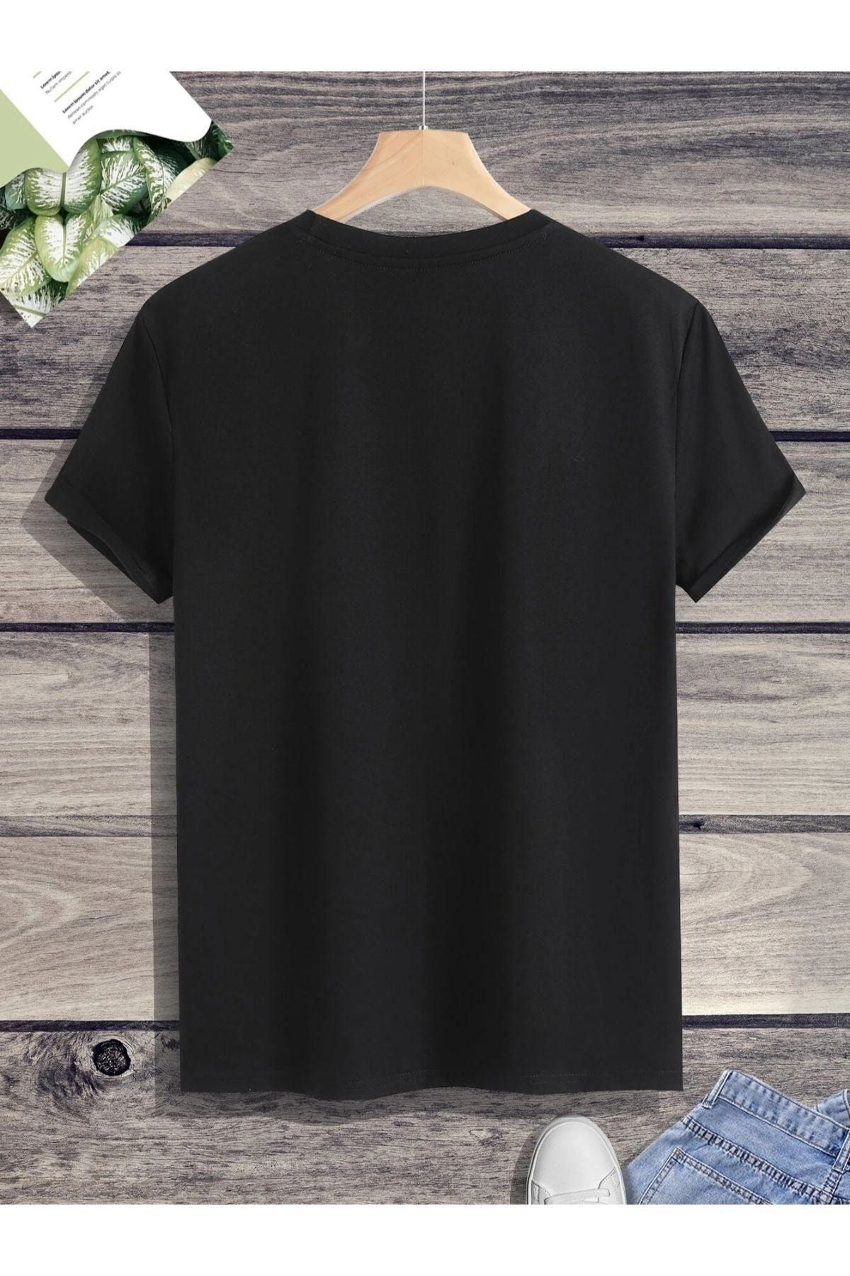 Wings T-Shirt - Siyah Baskılı Oversize Bisiklet Yaka Kısa Kol