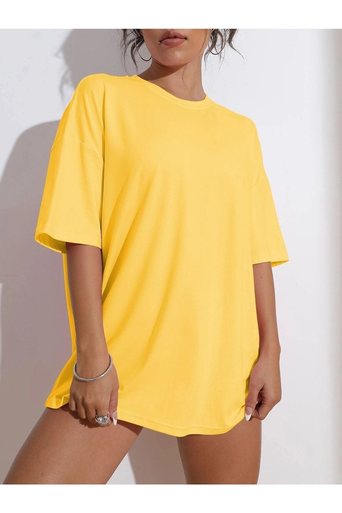 Wish Happy Süprem T-Shirt - Sarı Baskılı Oversize Bisiklet Yaka Kısa Kol Tişört