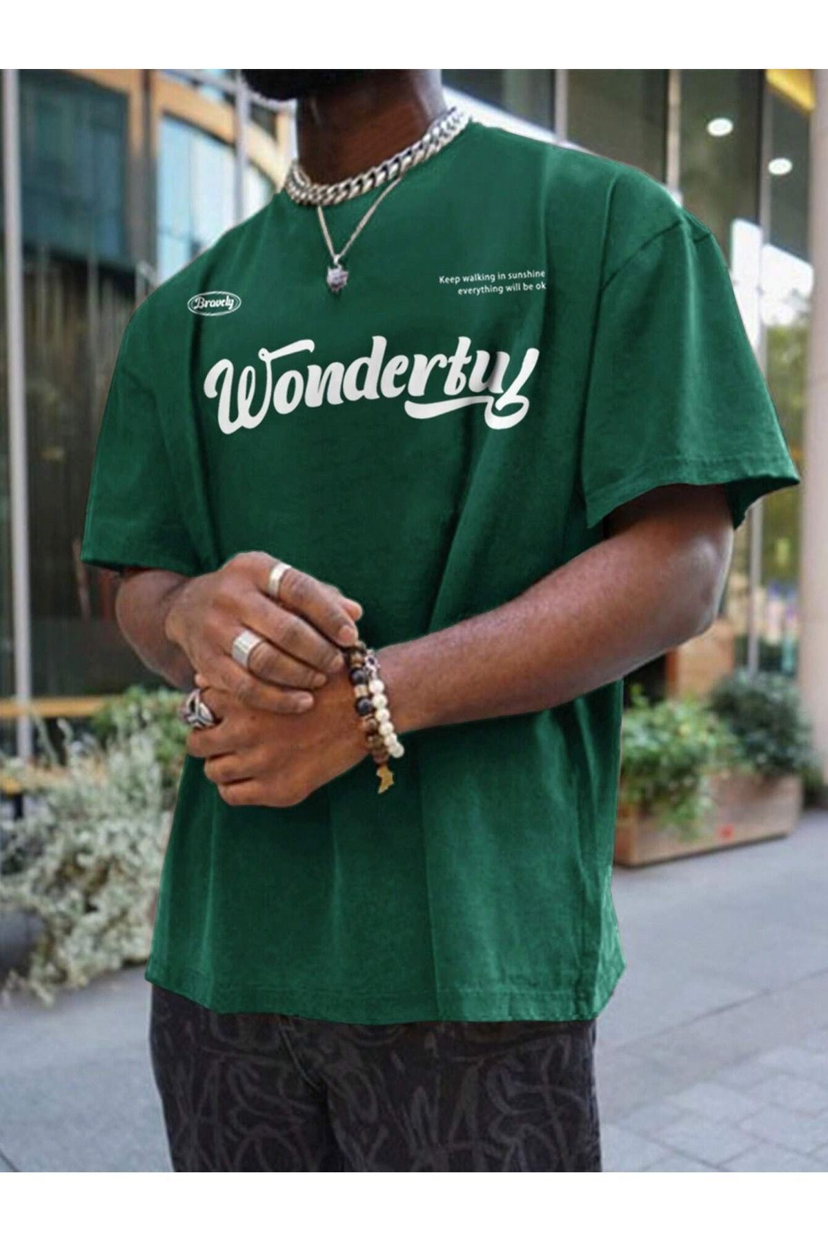 Günlük kullanım için ideal, rahat ve şık tasarımıyla öne çıkan nefti yeşil baskılı oversize bisiklet yaka tişört; Askılı kol tipi sayesinde yaz aylarında serinlik ve konfor sunar; Örme kumaş yapısı ile esneklik ve yumuşaklık sağlar, gün boyu rahat bir kullanım imkanı tanır; Her yaş grubuna hitap eden tasarımıyla geniş bir kullanıcı yelpazesine sahiptir; Baskılı deseniyle dikkat çekici bir görünüm kazandırırken, stil sahibi bir duruş sergiler; Uzun boy kesimi ile modern ve şık bir siluet oluştururken, vücut hatlarını nazikçe sarar; Süprem dokuma tipi sayesinde dayanıklılık ve kaliteyi bir arada sunar; uzun süreli kullanım için idealdir; Oversize kalıbı ile rahat hareket etme özgürlüğü sağlar ve trend bir görünüm sunar; Uzun kol boyu mevsim geçişlerinde de ideal koruma sağlar; Bisiklet yakası ile sade ve zamansız bir tarz yaratırken, kombin yapmayı;