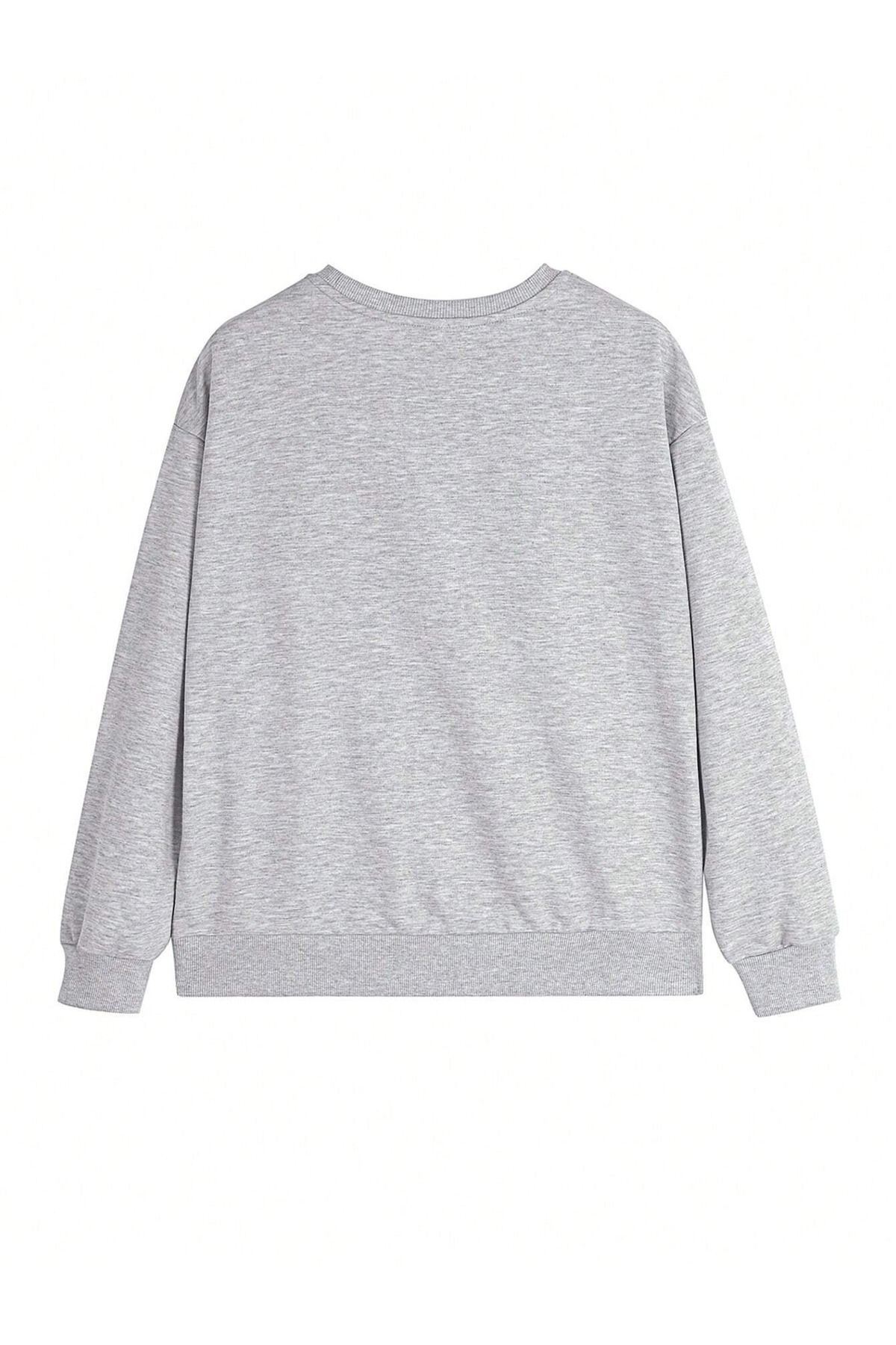 Wooderful 1985 Kışlık Kalın Sweatshirt - Gri Baskılı Oversize Kalın Kışlık Bisiklet Yaka