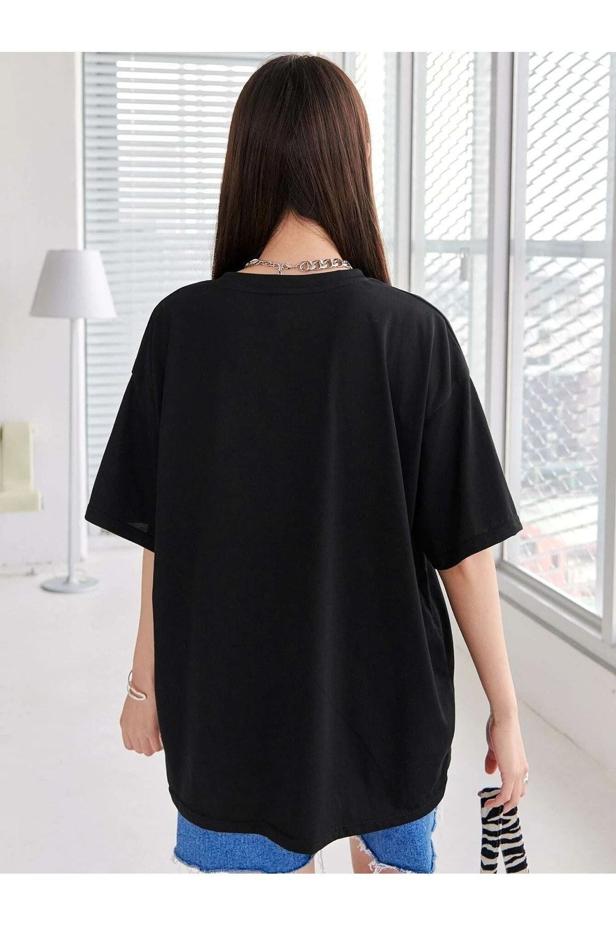 Wtfk T-Shirt - Siyah Baskılı Oversize Bisiklet Yaka Kısa Kol
