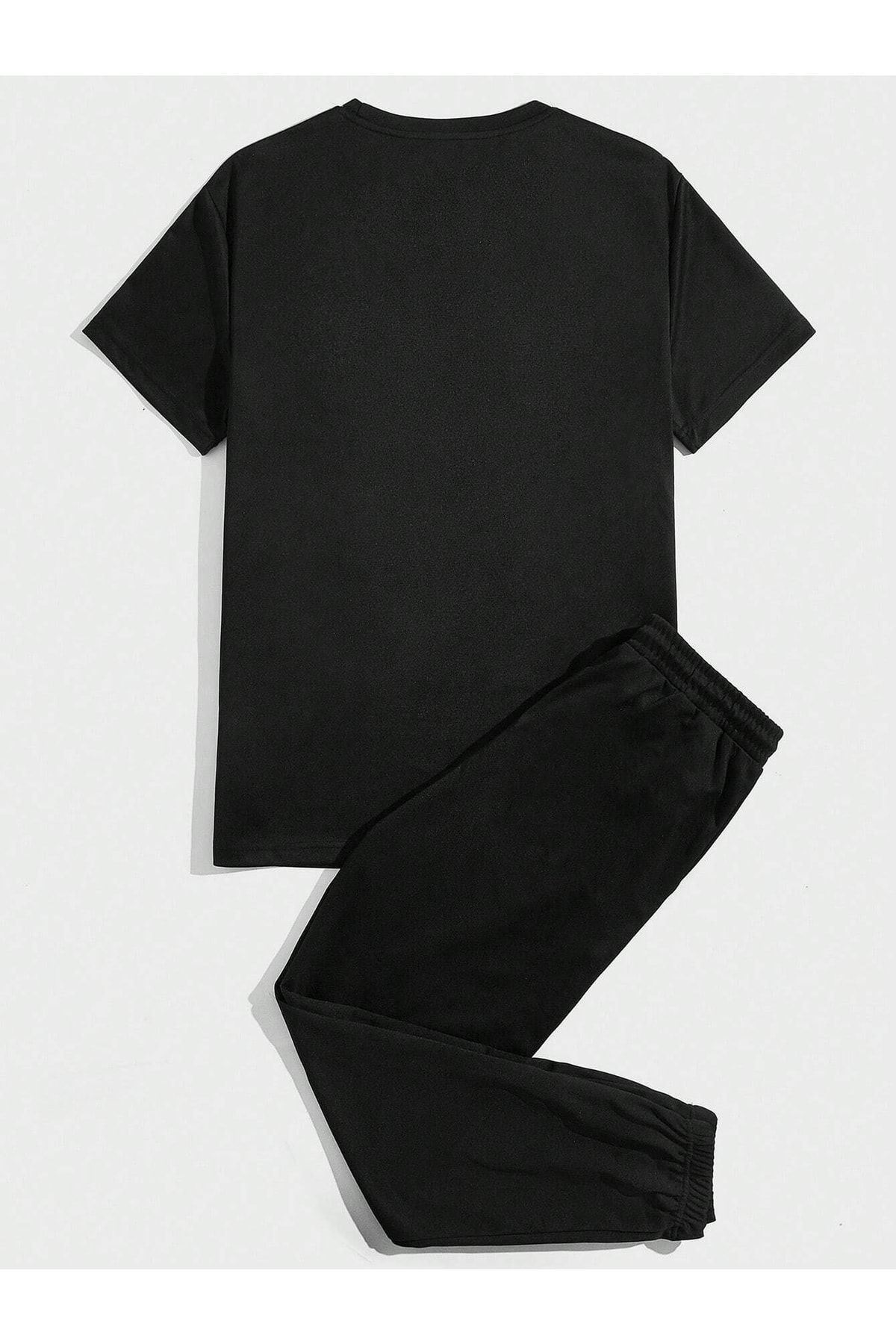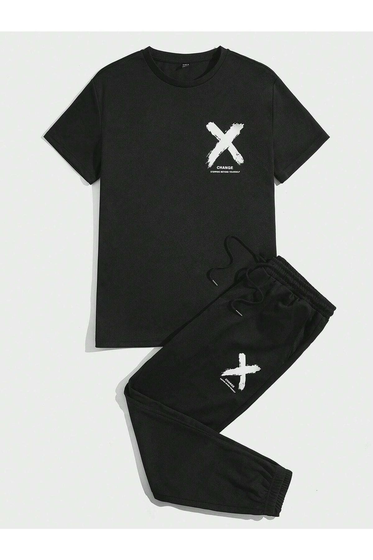 X Change T-shirt Eşofman Altı Jogger - Siyah Baskılı Alt Üst Eşofman Takım Oversize Bisiklet Yaka