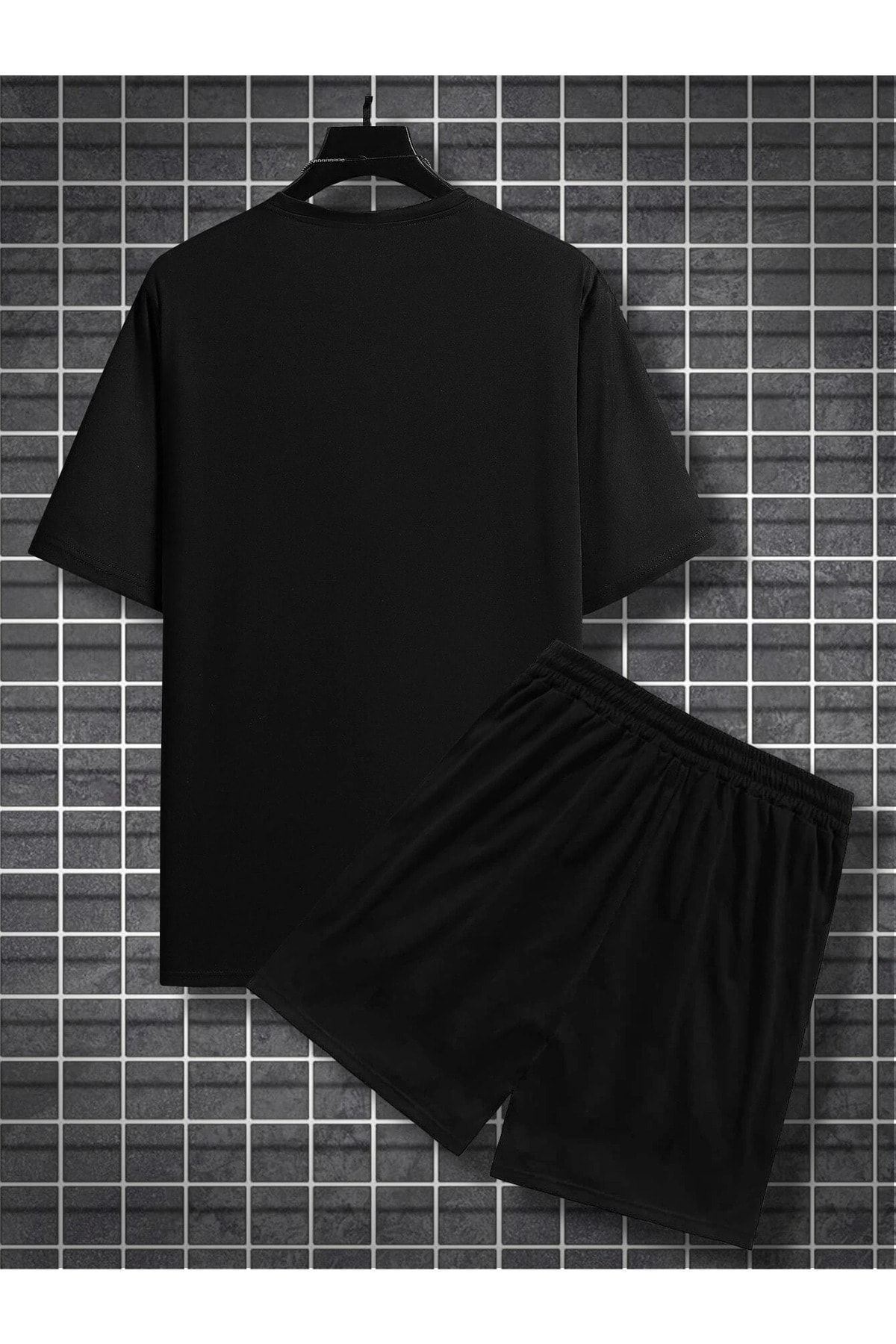 X Smile T-Shirt Şort - Siyah Alt Üst Kombin Şort Tişört Takım Baskılı Oversize Bisiklet Yaka
